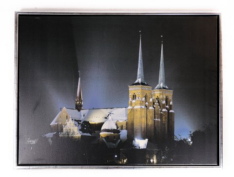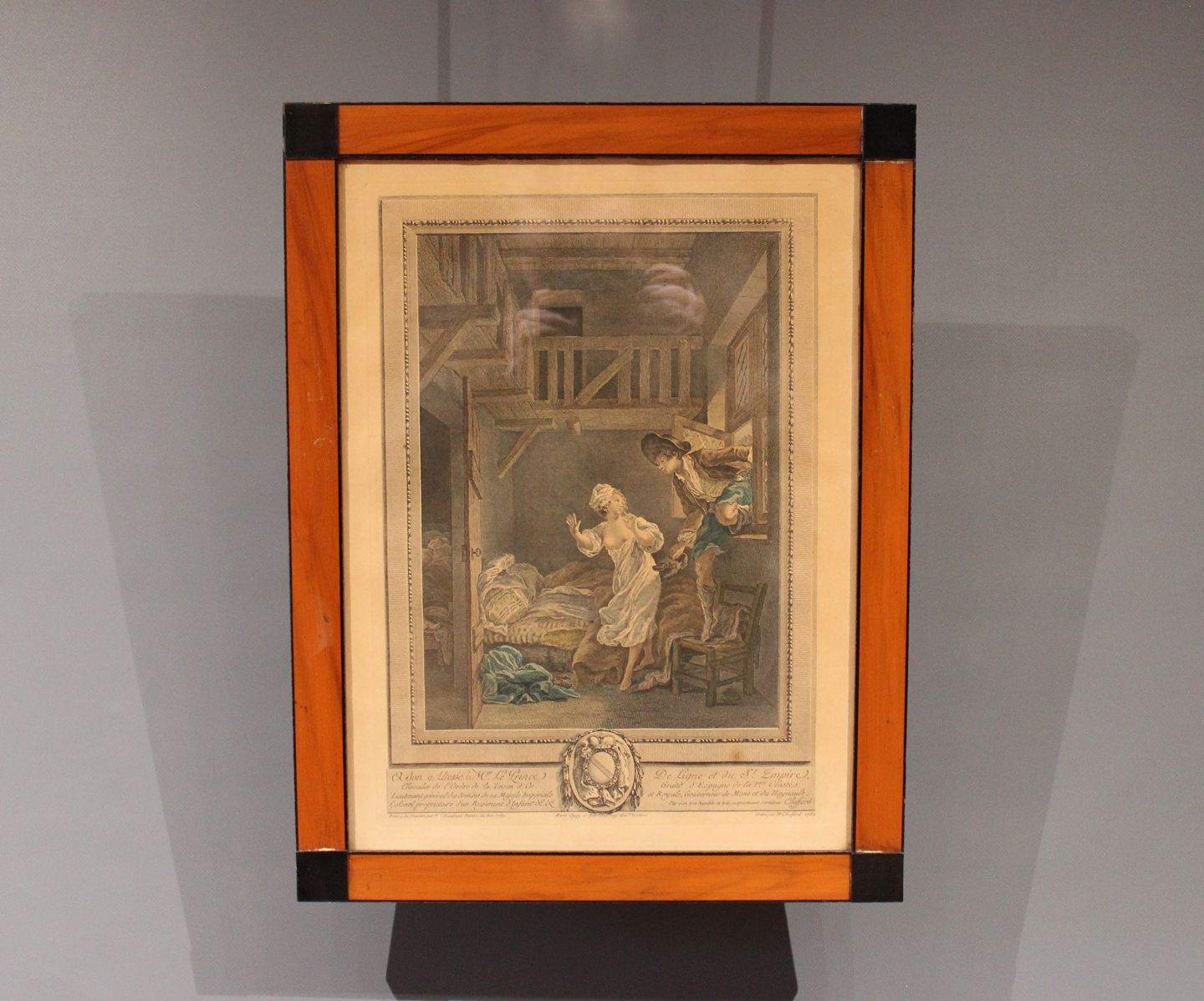Gravering med fint motiv i to farvet træramme, i flot stand.