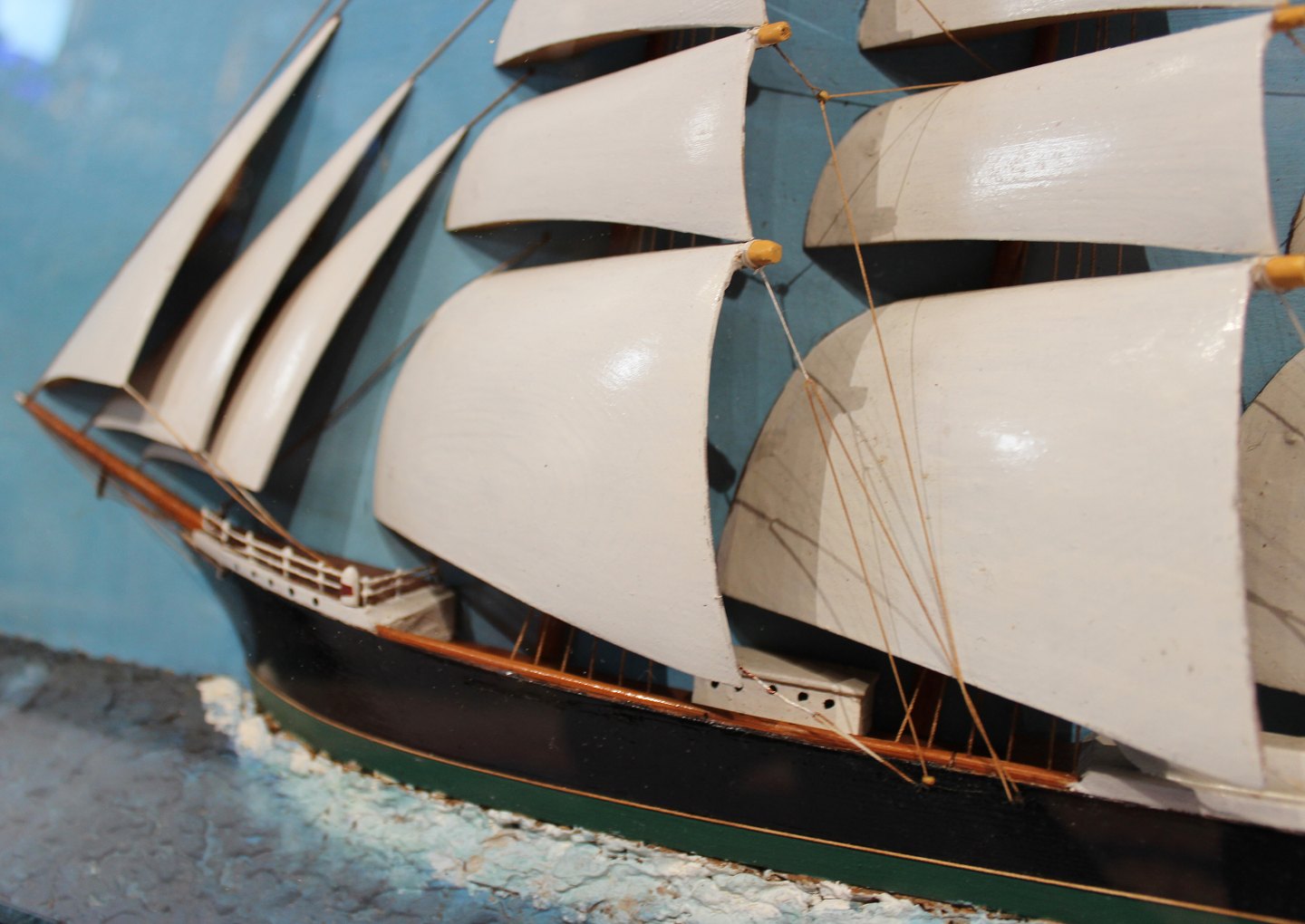 Flot dekoreret halvskib i mørk træramme fra omkring 1930erne.