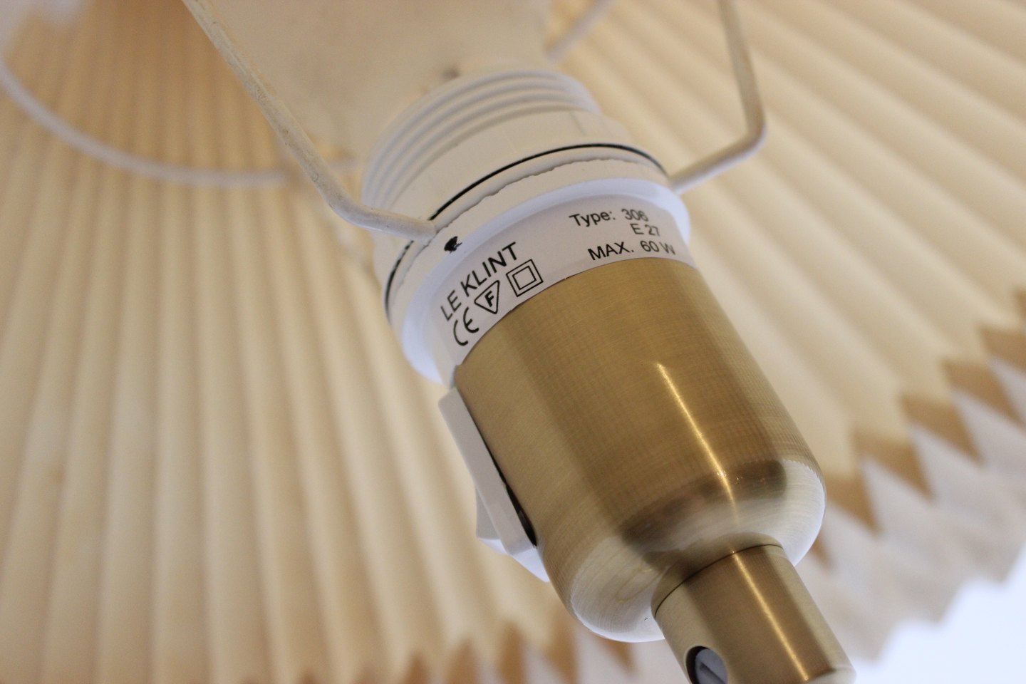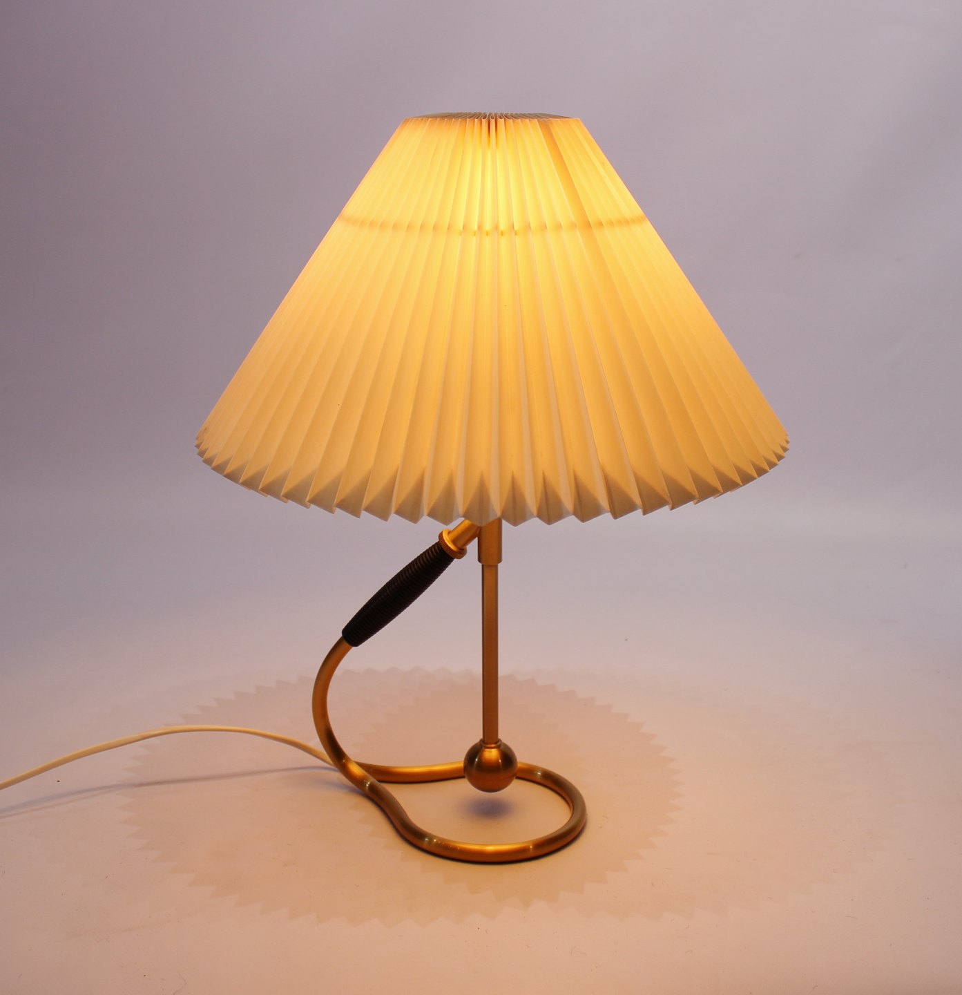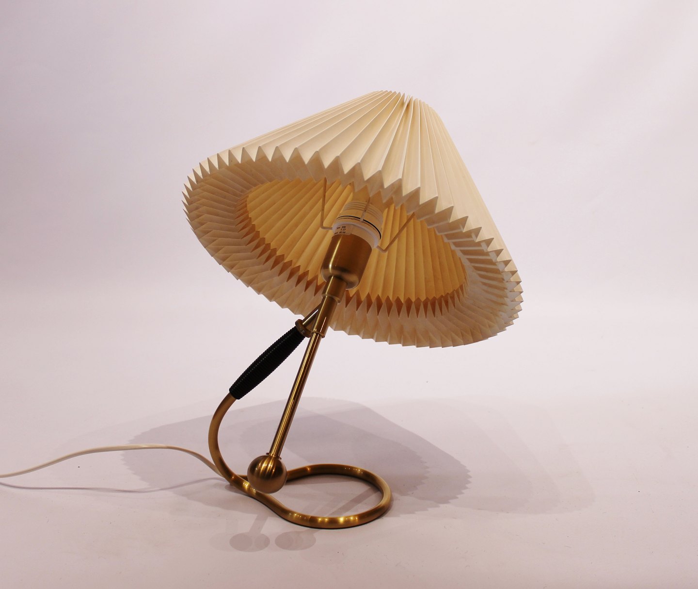 Bordlampe, model 306, i messing med vippefunktion designet af Kaare Klint i 1945 og fremstillet af Le Klint. Lampen er i flot brugt stand.