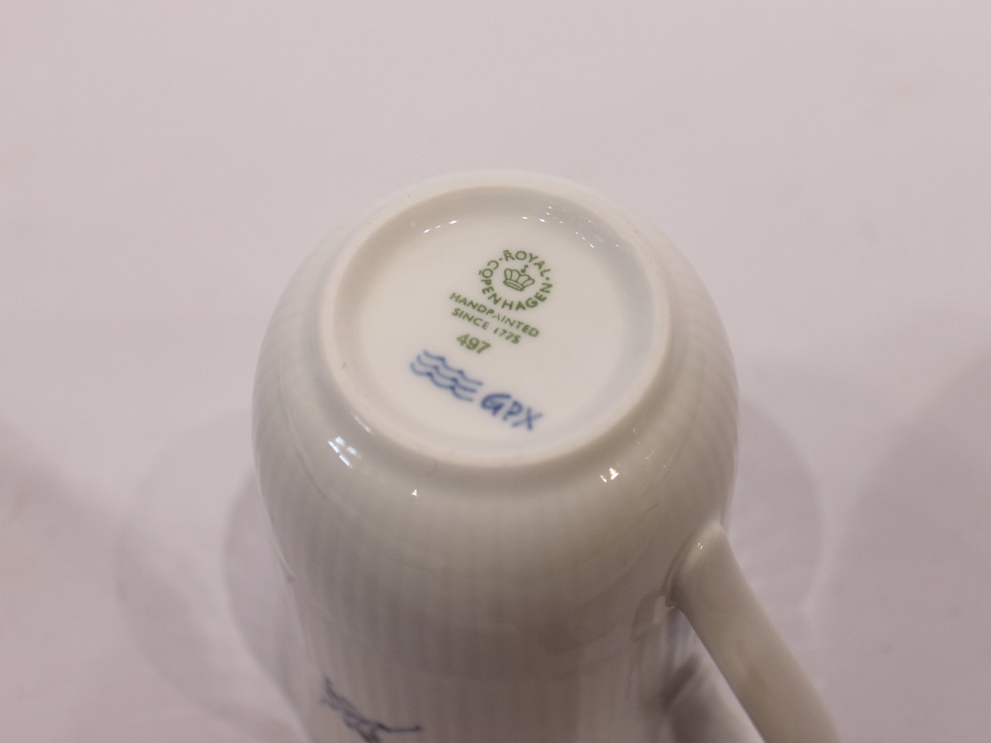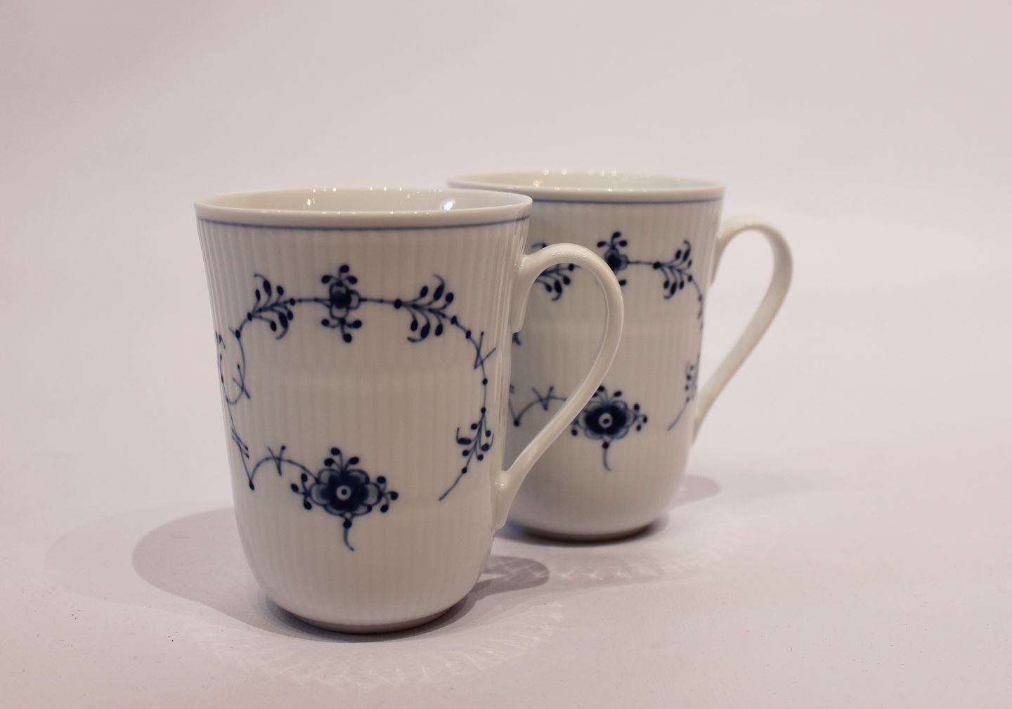 Et par musselmalet riflet kopper, nr.: 497, af Royal Copenhagen.
