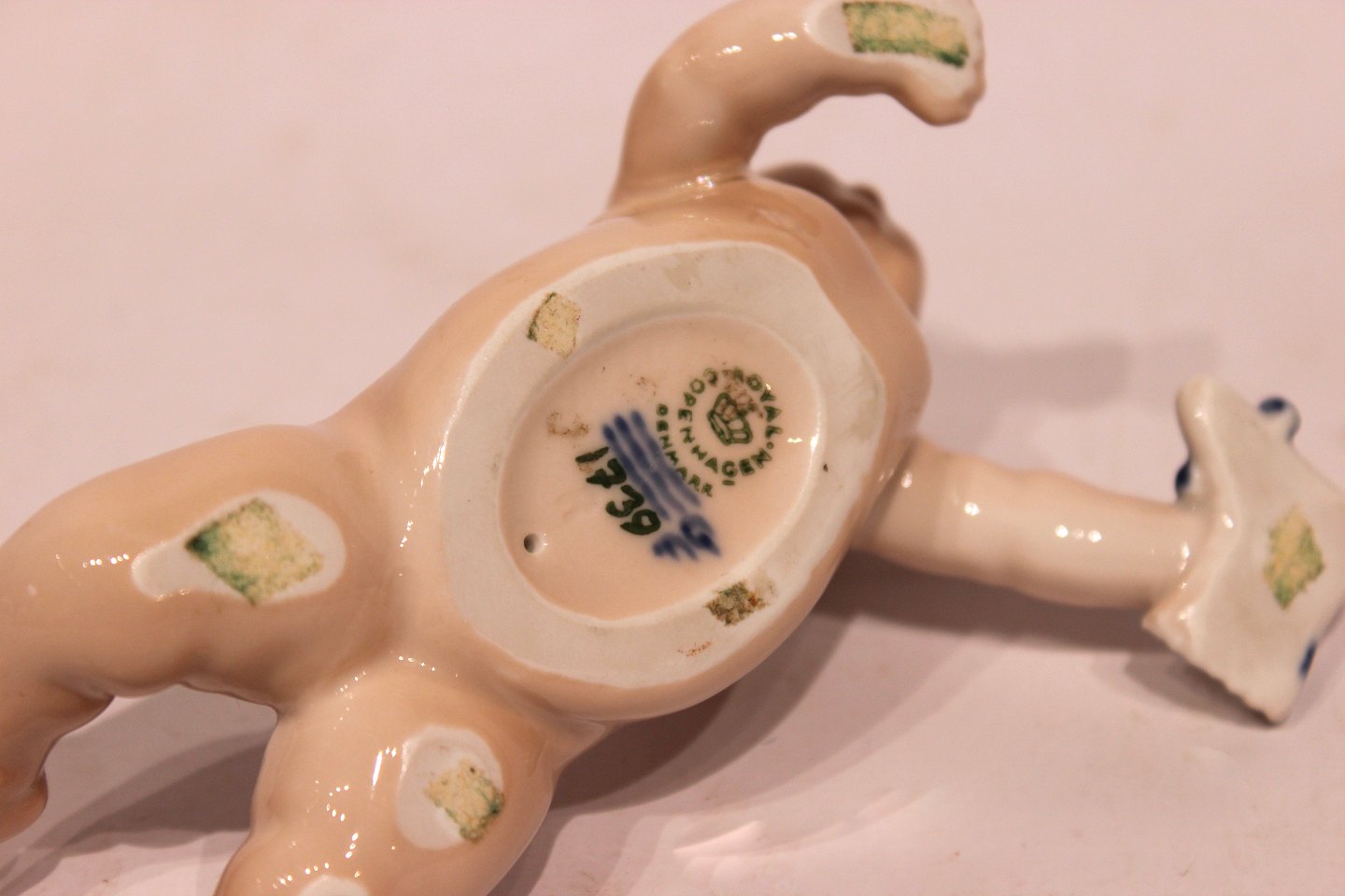 Kgl. porcelænsfigur, liggende baby, nr.: 1739.