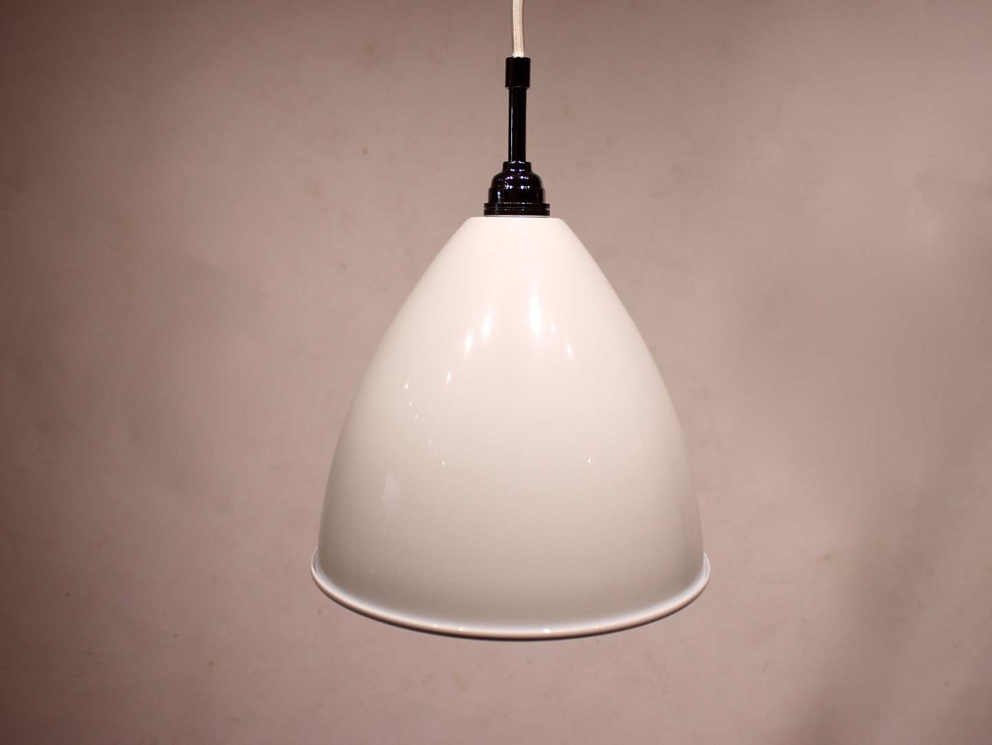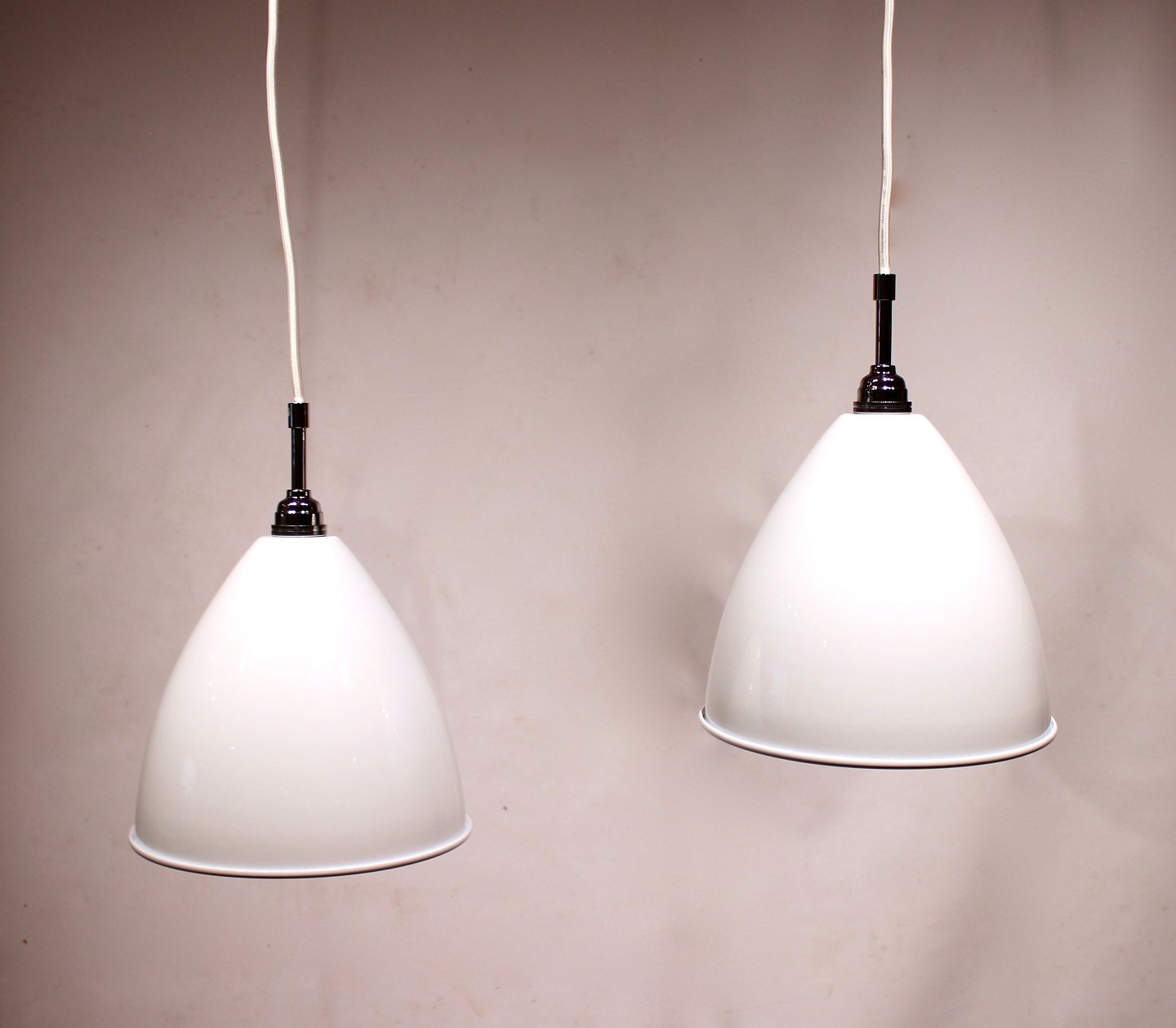 Et par hvide Bestlite pendler, model BL9, af Robert Dudley Best for Gubi.
