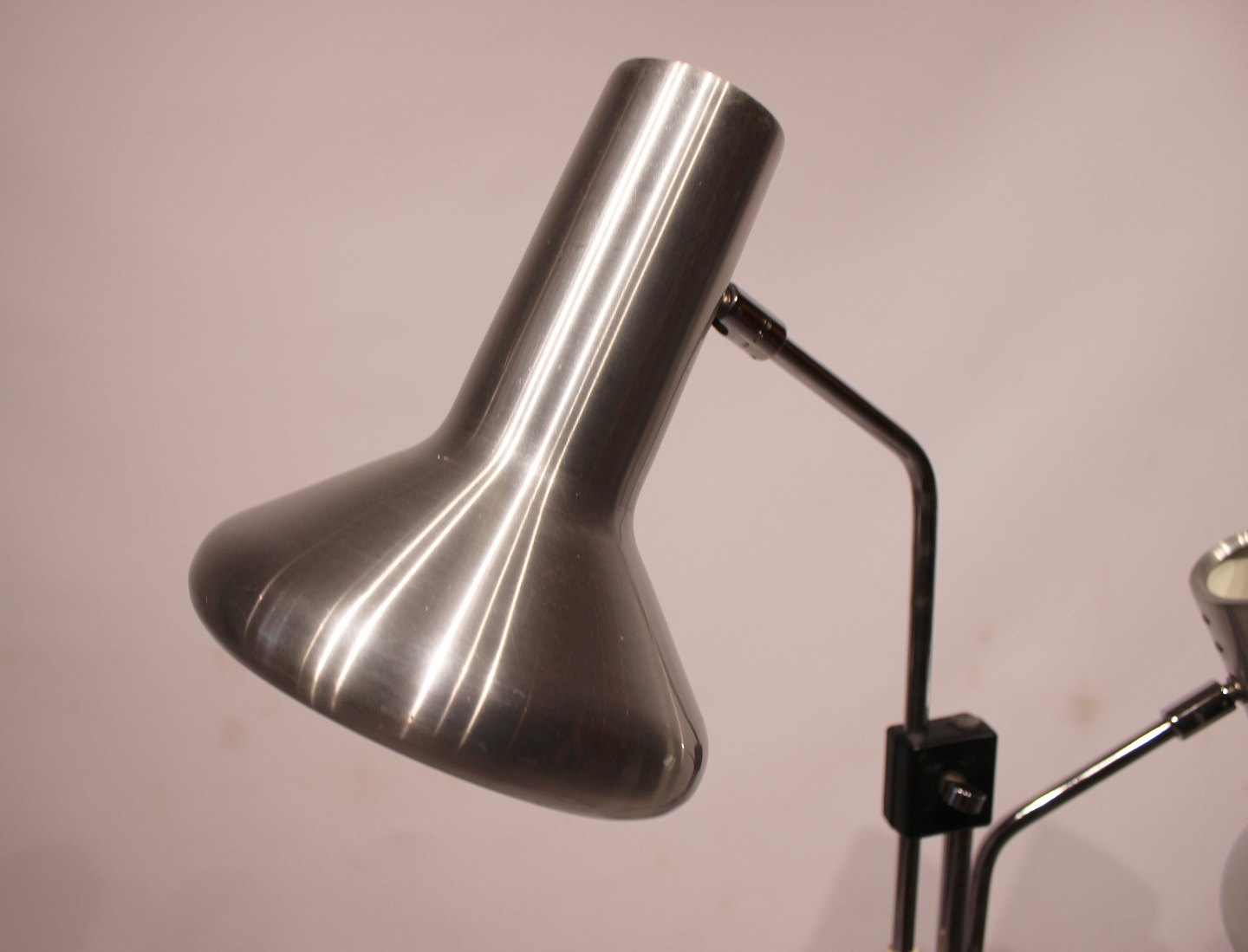 Standerlampe af stål og dansk design fra 1960erne. Lampen er i flot brugt stand.