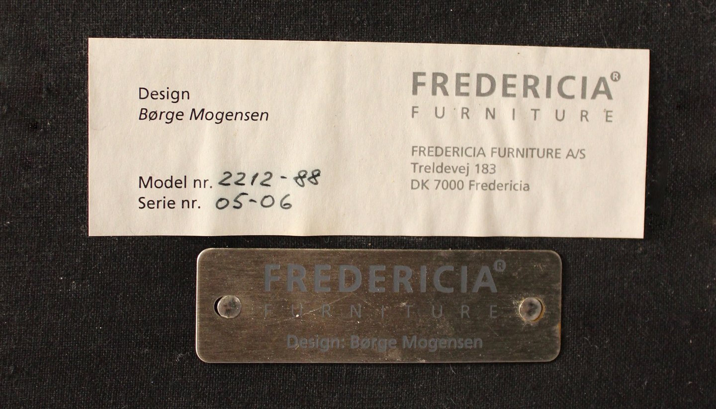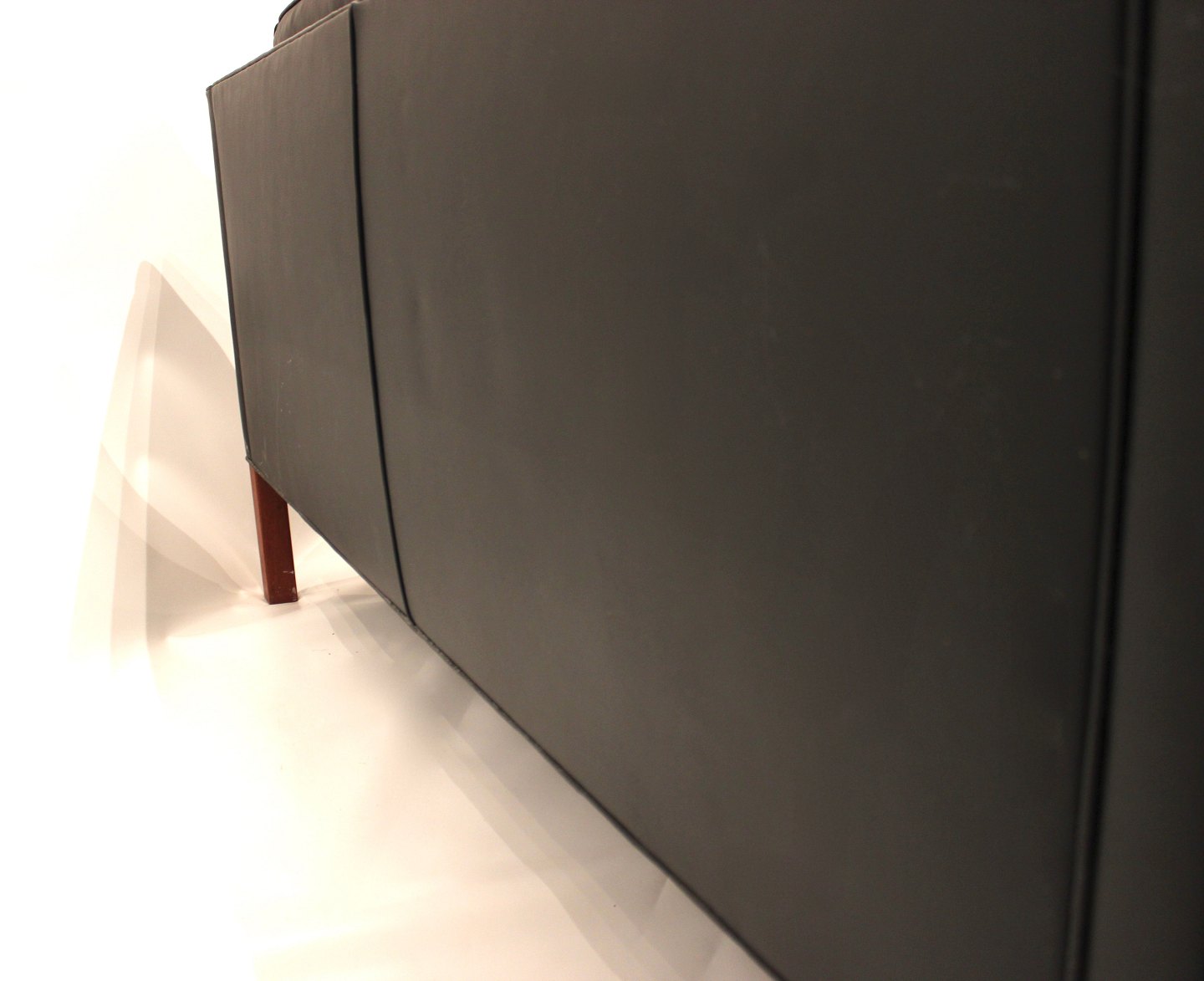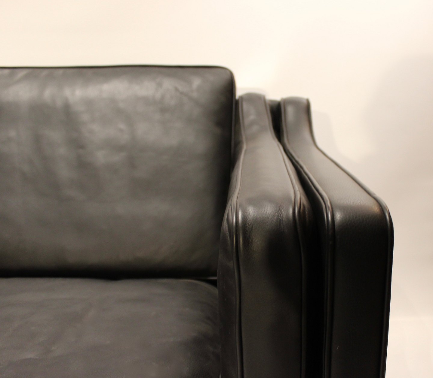 Sort læder 2 personers sofa med ben af mahogni, model 2212, designet af Børge Mogensen i 1962 og fremstillet af Fredericia Furniture i 1980erne. Vi har 2 stk. på lager.