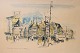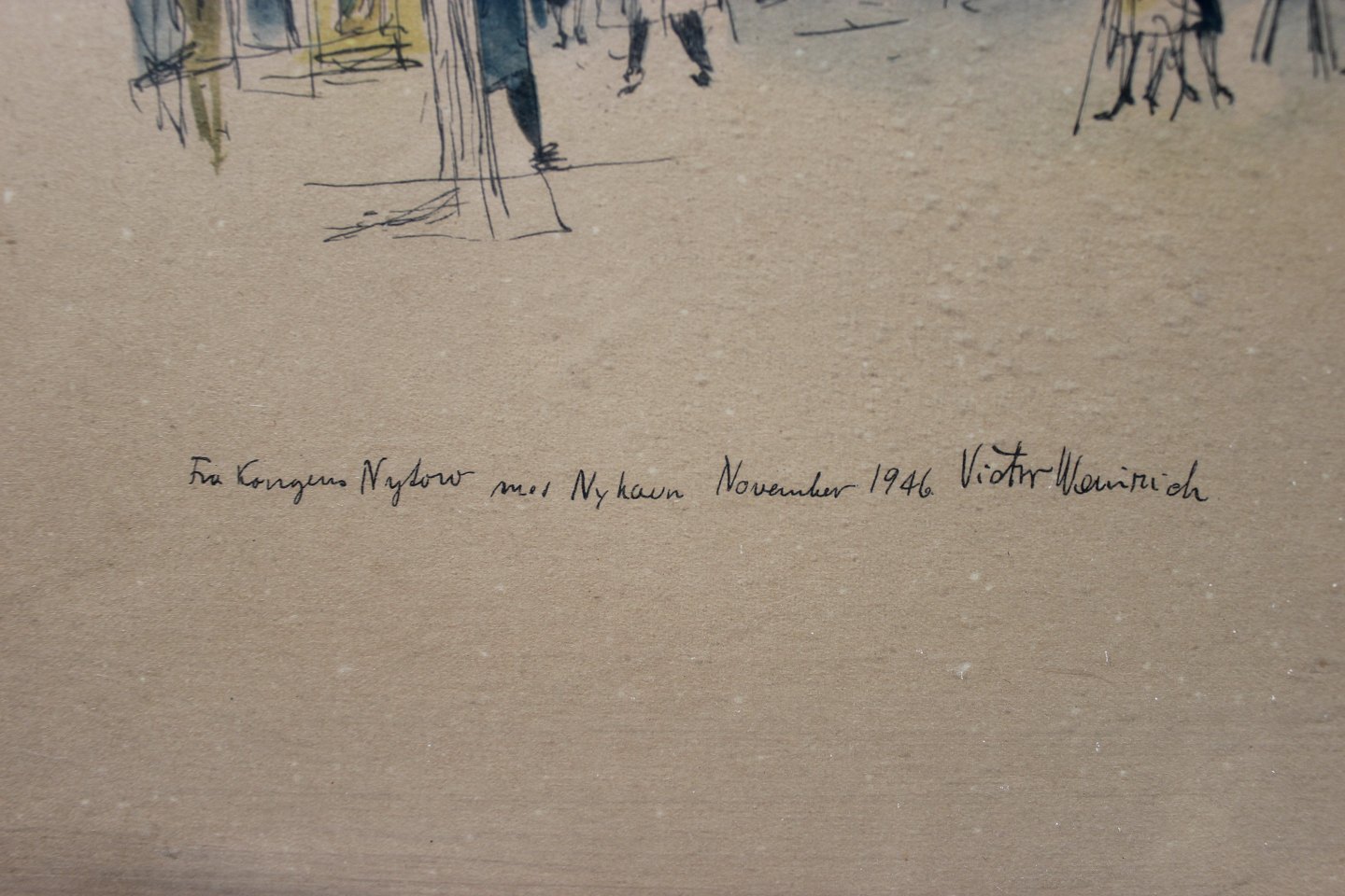 Tegning af Kongens Nytorv mod Nyhavn, Kjøbenhavn fra November 1946 signeret Victor Weinrich.