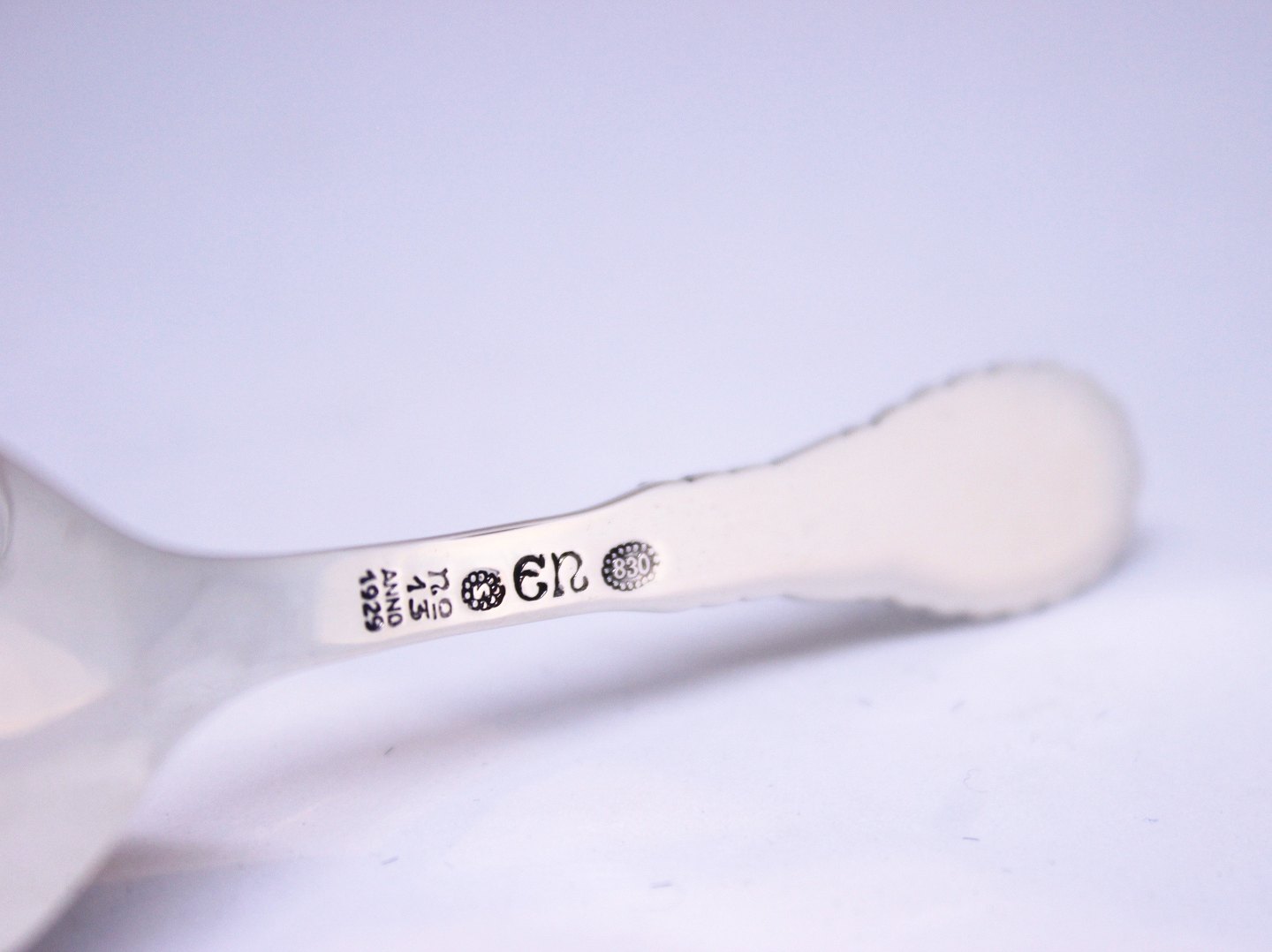 Marmeladeske nr. 13 af Evald Nielsen og i 830 sølv. Skeen er i flot brugt stand.