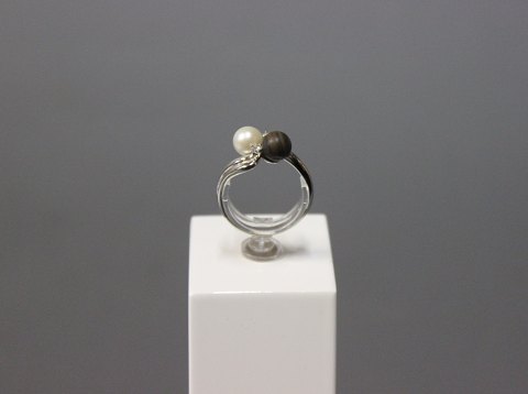 Ring af 925 sterling sølv dekoreret med rav og stemplet EF. Vi har 2 stk. på lager.