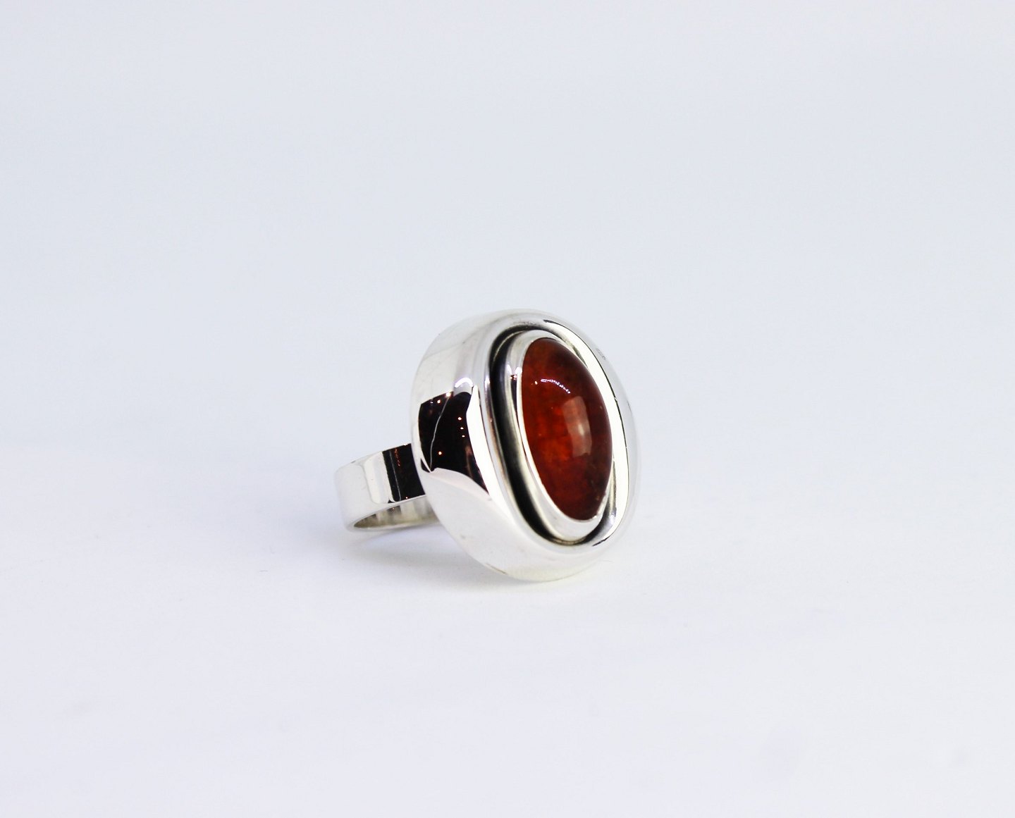 Ring af 925 sterling sølv dekoreret med rav og stemplet N.E. From.