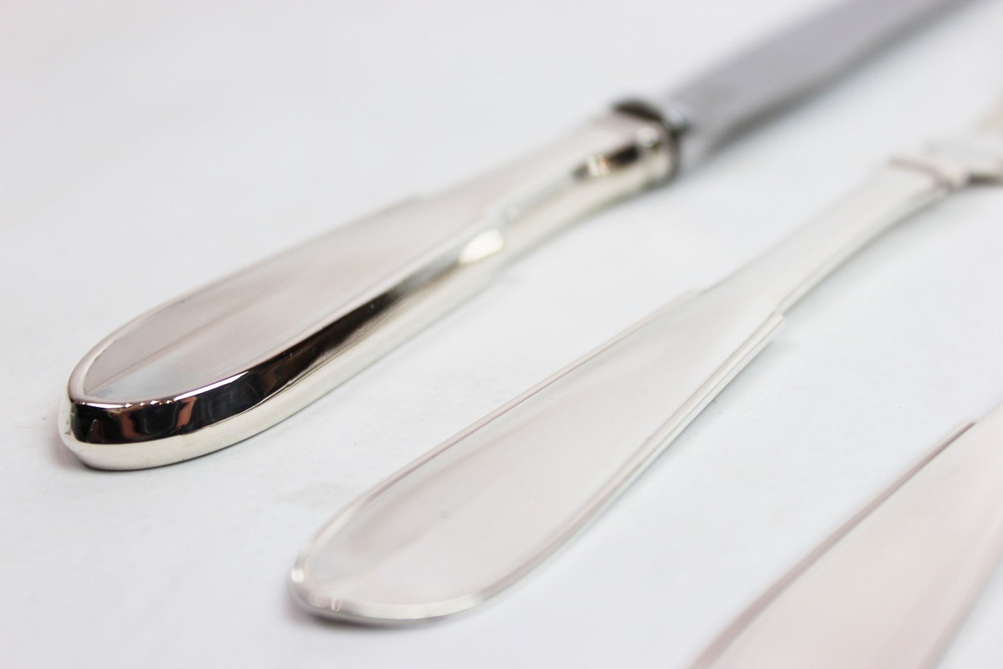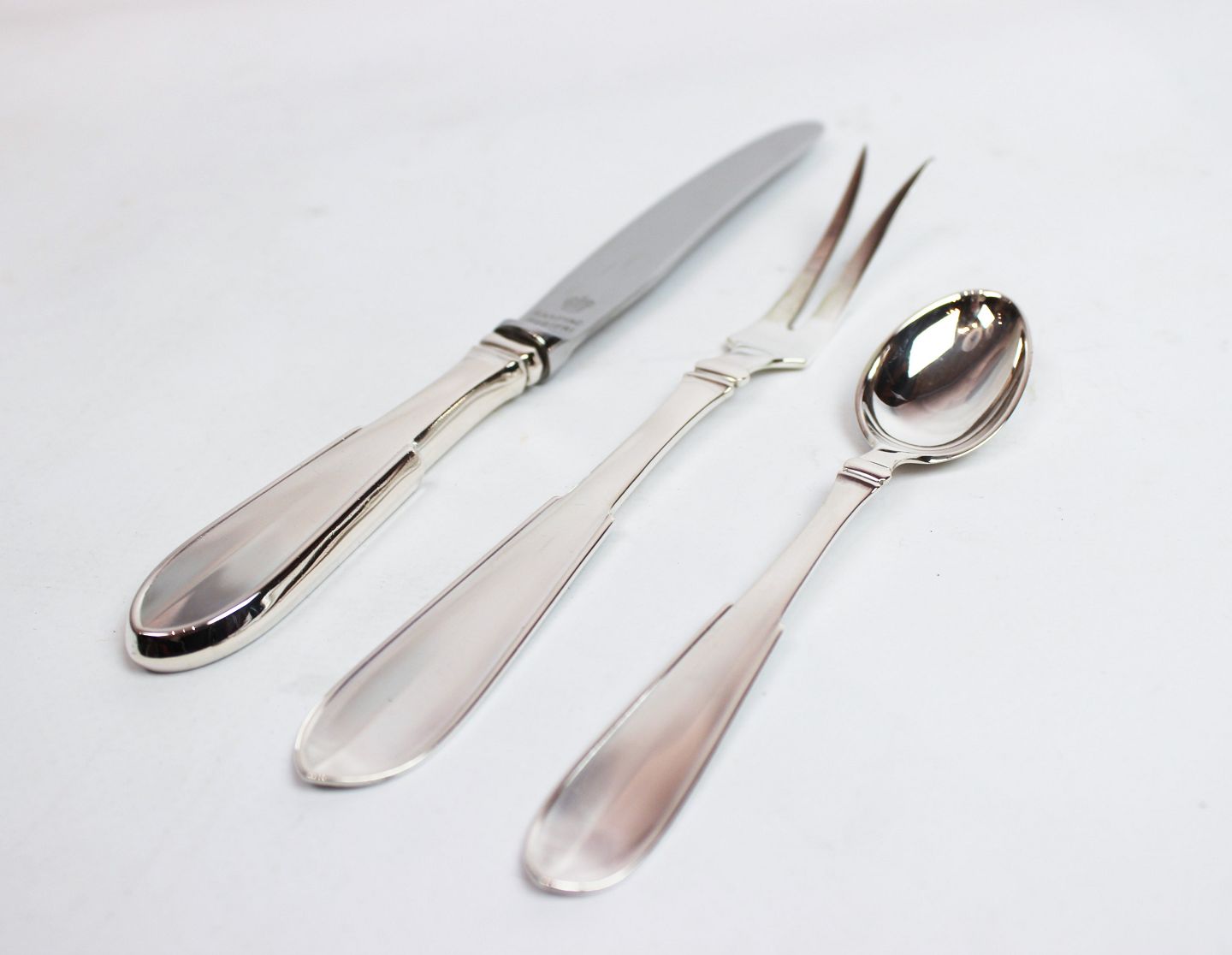 Se prisen i varebeskrivelsenFrugtkniv, pålægsgaffel og teske i Arvesølv nr. 1 af Hans Hansen. Spørg for antal på lager.