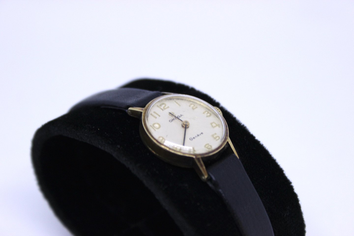 SolgtOmega Genéve dame ur med schweizisk urværk og sort Hirsch læder rem. Uret er i flot brugt stand og urkassen er af 14 kt. guld.