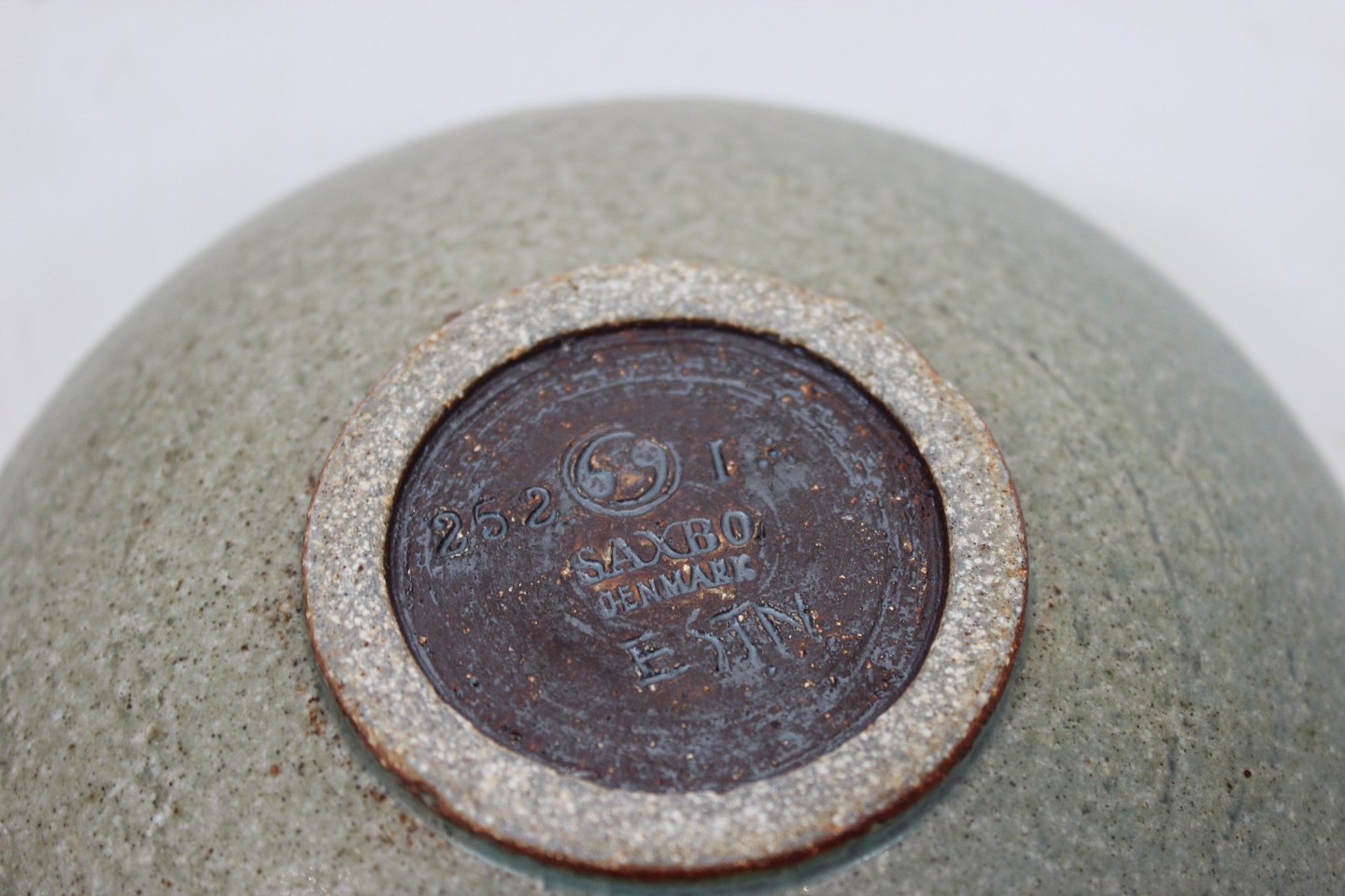 Keramisk skål i turkise farver, nummer 262, af Eva Stæhr Nielsen for Saxbo. Skålen er i flot brugt stand.