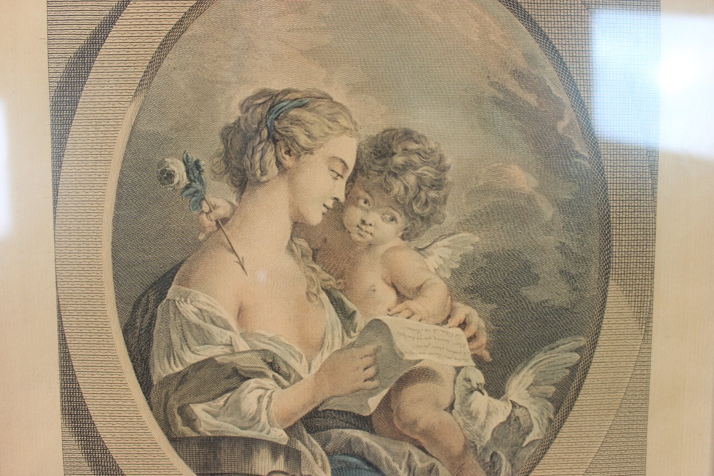 Gravering med fint motiv i to farvet træramme, i flot stand.