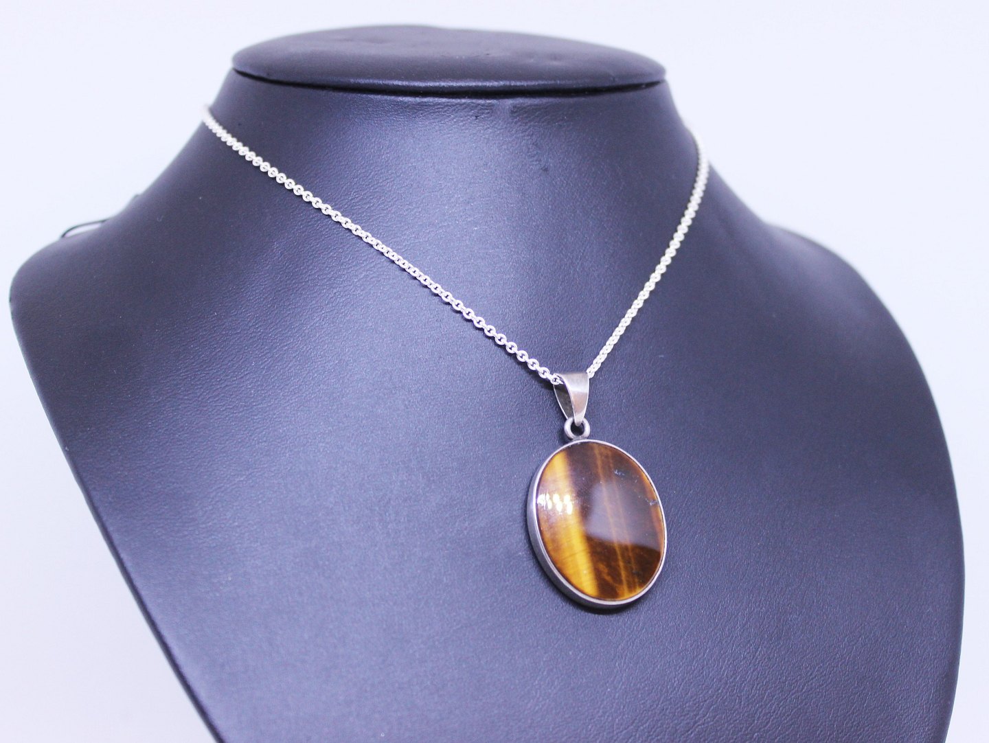 Vedhæng af 925 sterling sølv og tigerøje stemplet N.E. From. Smykket er i pæn stand og kæde kan tilkøbes.