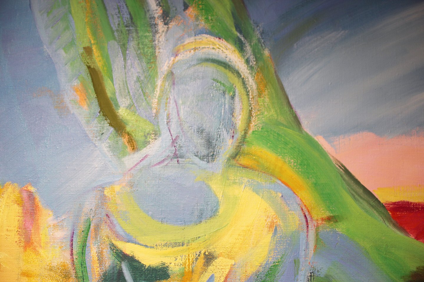 Oliemaleri på lærred i stærke farver af den dansk kunster Åse Højer, f. 1952. Maleriet er med en mørk ramme, samt i flot stand.