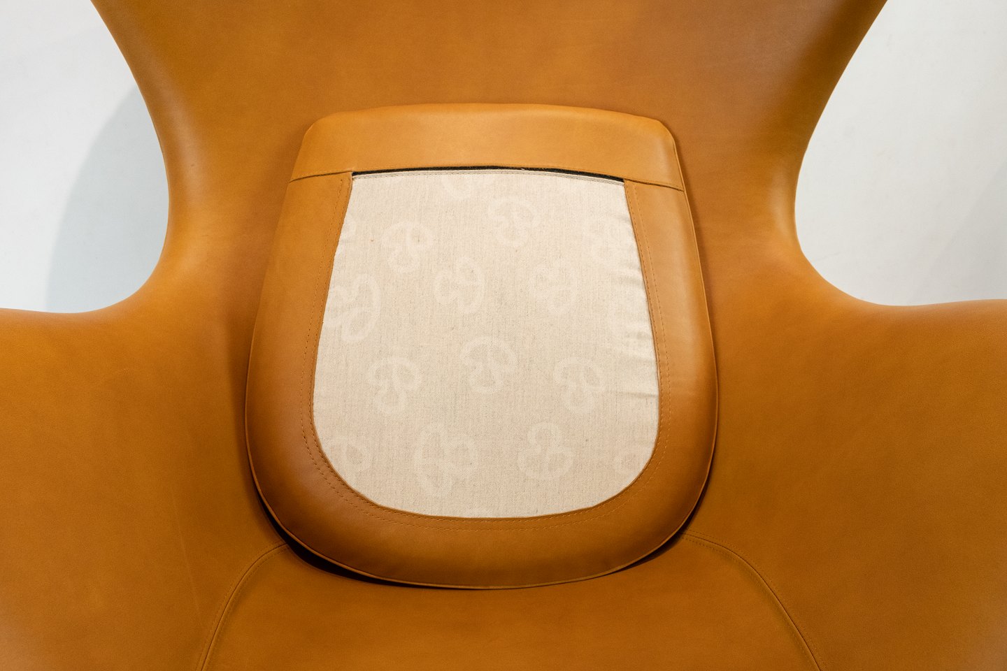 Fremstillet af Fritz Hansen, et anerkendt dansk møbelfirma kendt for sit håndværk og kvalitet, er Ægget skabt med materialer af højeste standard. Stolen er polstret i cognacfarvet klassisk læder, hvilket tilføjer varme og raffinement til sit udseende.
