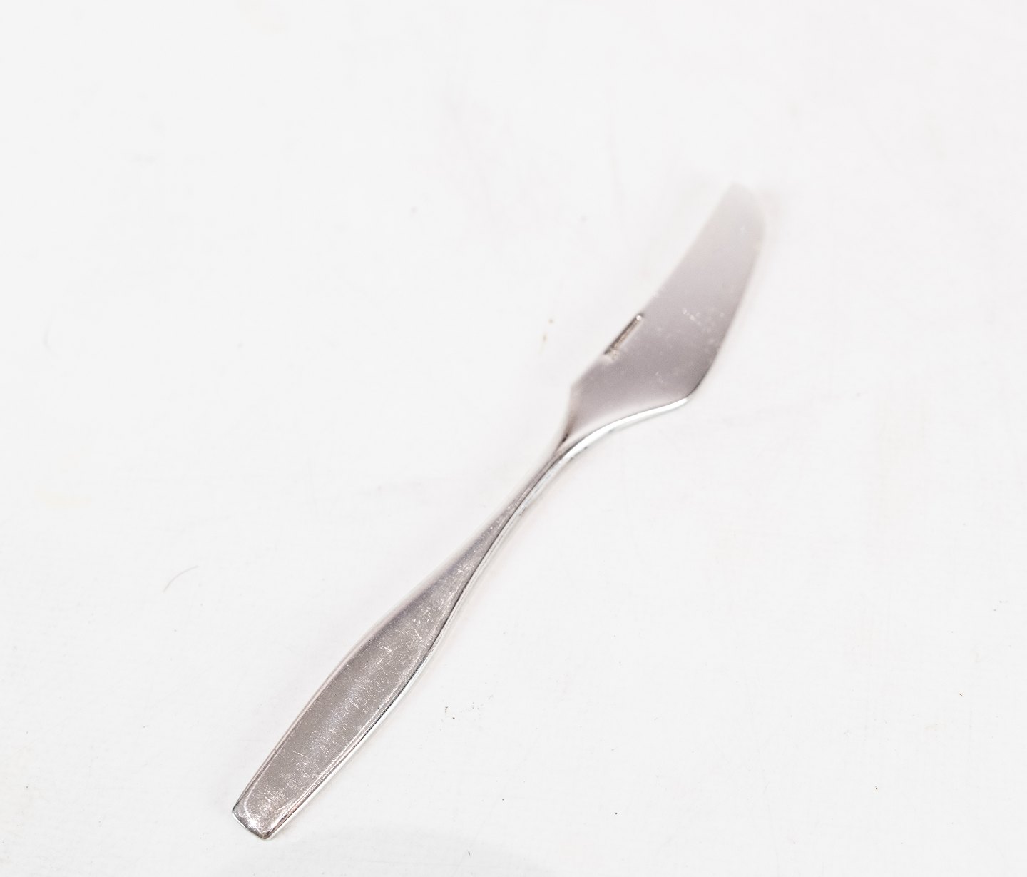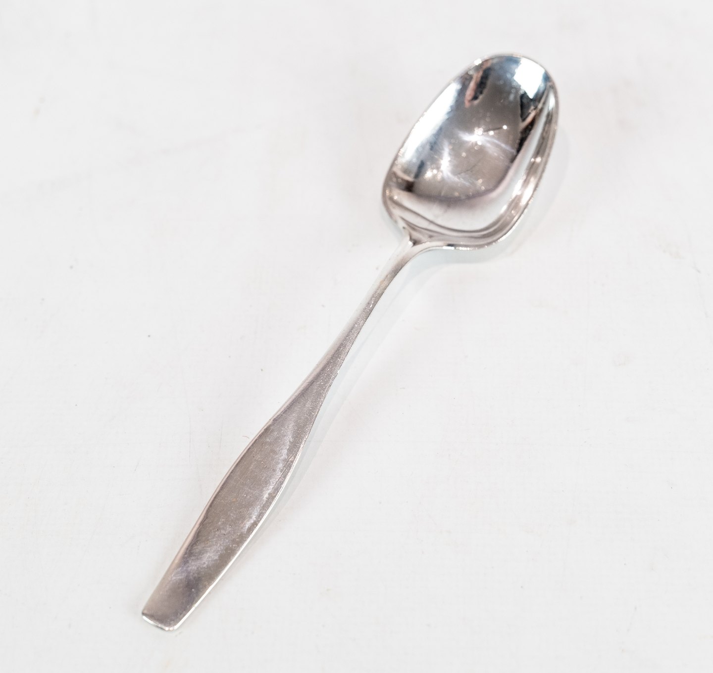 Sæt af barneske og barnekniv af Hans Hansen i tretårnet sølv.