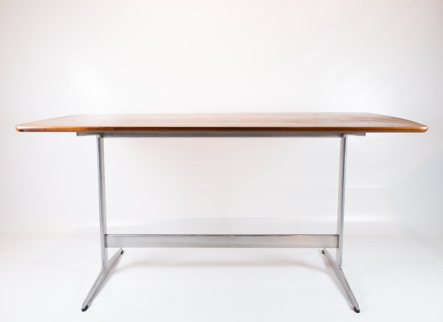 Shakerbord i teak og med metal stel designet af Arne Jacobsen fra 1960erne. Bordet er i flot brugt stand.