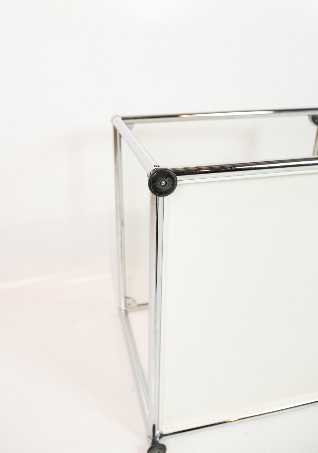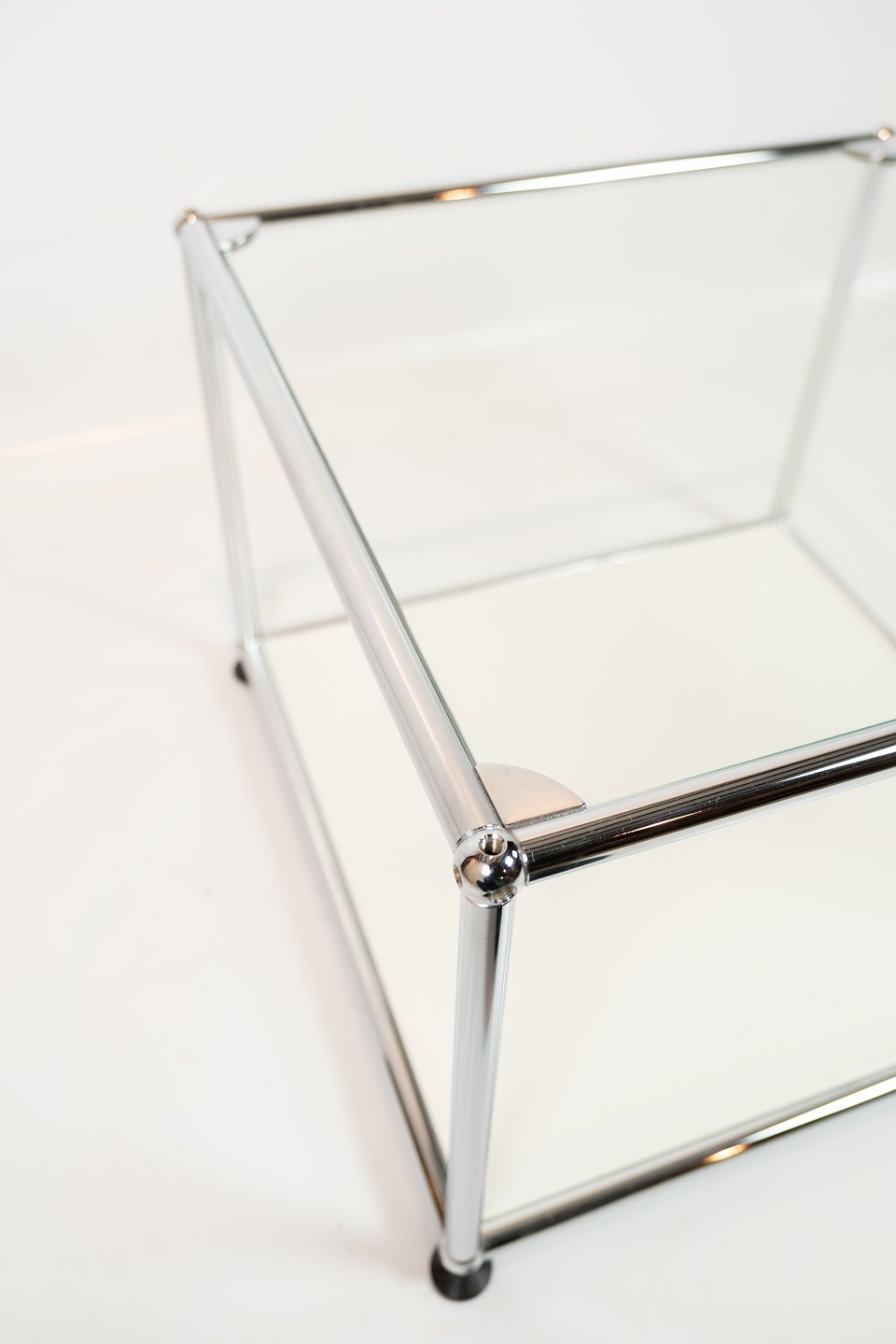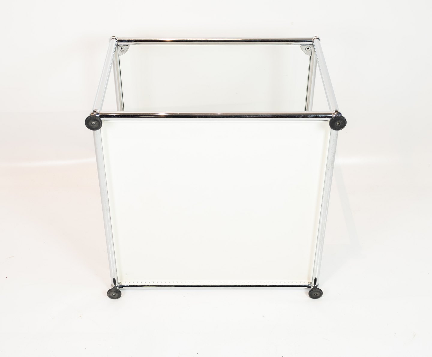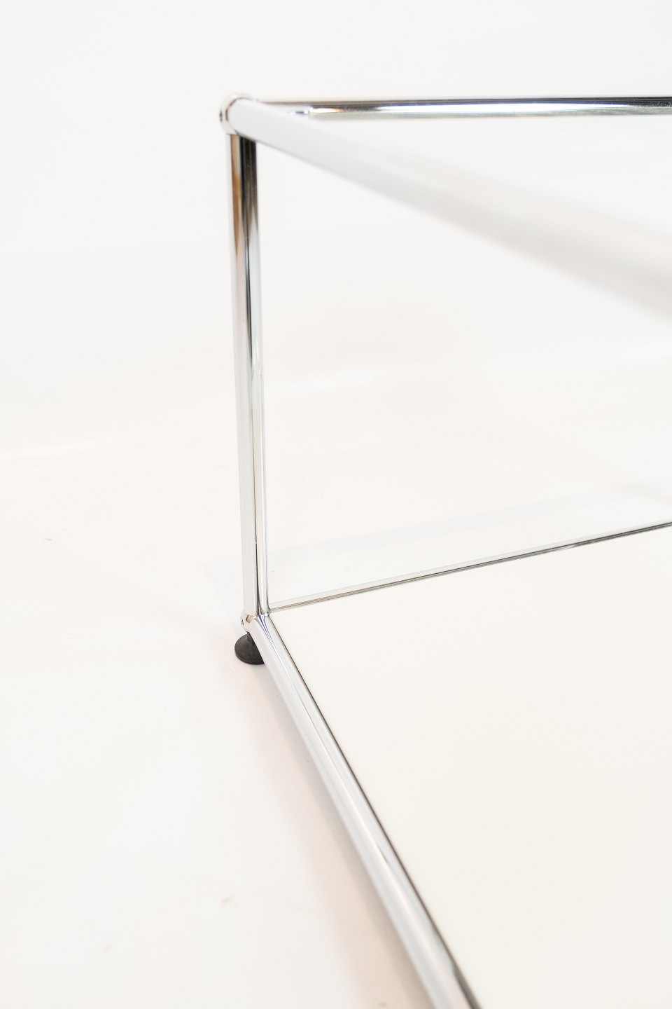 Et sæt italienske sideborde i glas og krom stel, i flot brugt stand.