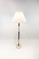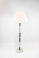 Gulvlampe i metal og palisander af dansk design fra 1960erne. Skærmen er håndfoldet og håndmalet i papir.
