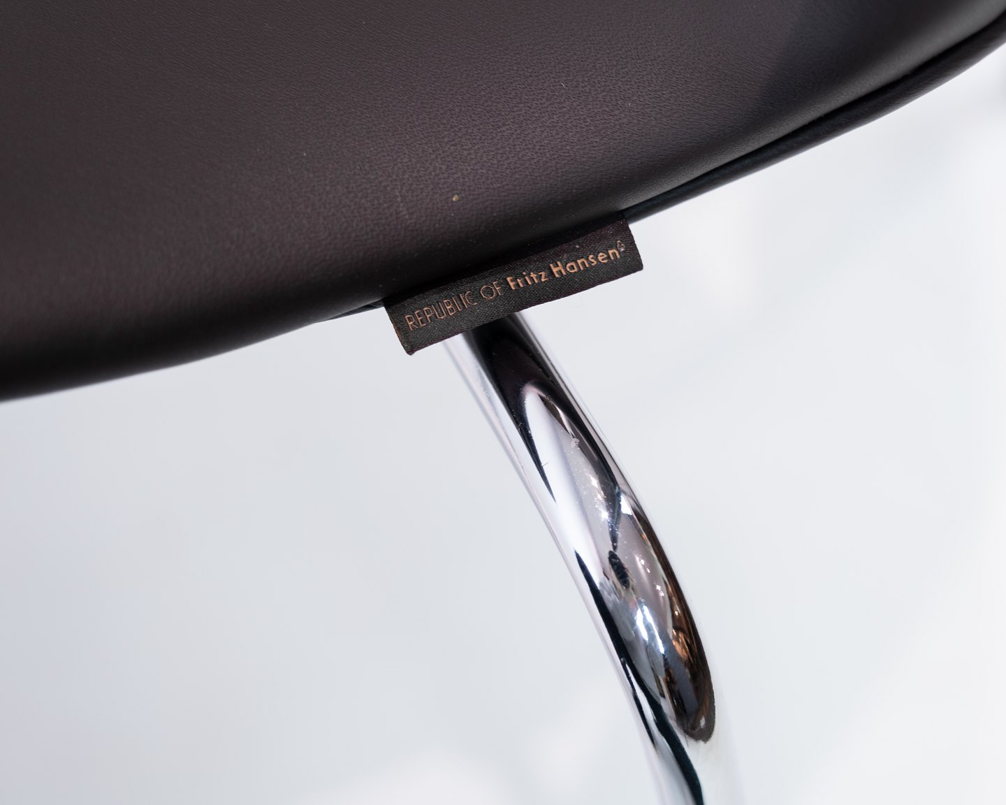 Fritz Hansen, en førende producent af kvalitetsmøbler, har sikret, at disse Syver-stole lever op til de højeste standarder for både design og håndværk. Den nypolstrede brun mokka Elegance læder tilføjer en luksuriøs fornemmelse til disse allerede ikoniske stole.