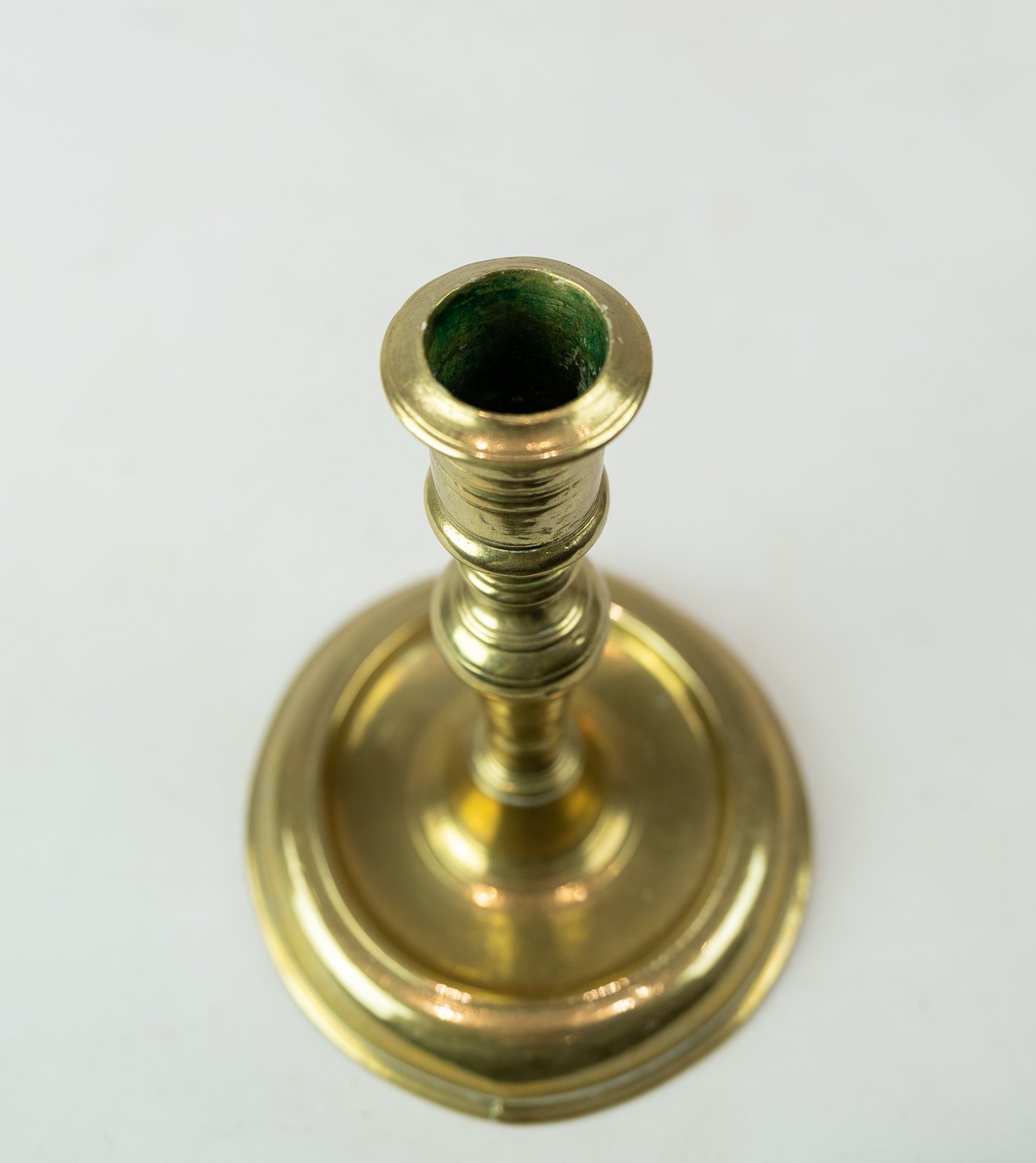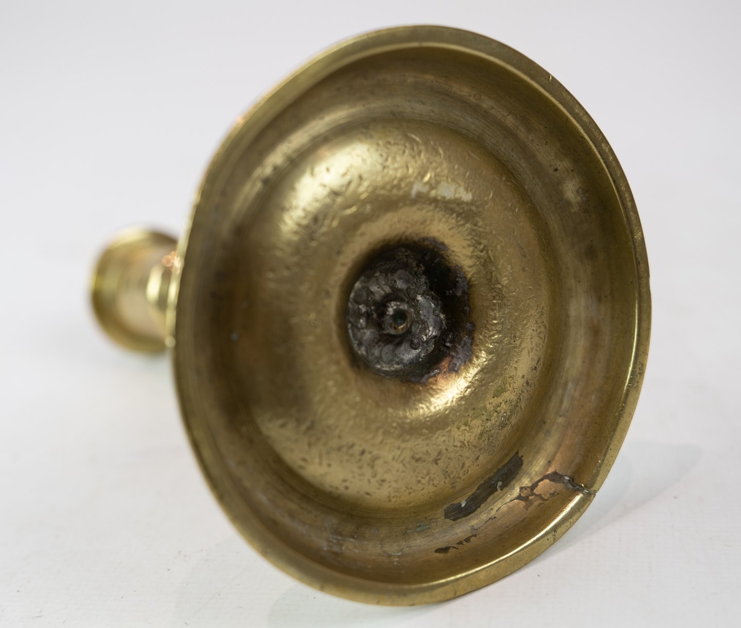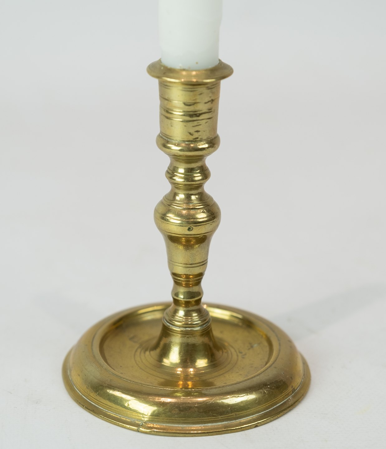 Barok lysestage i messing, i flot brugt stand fra slutningen af 1700 tallet.