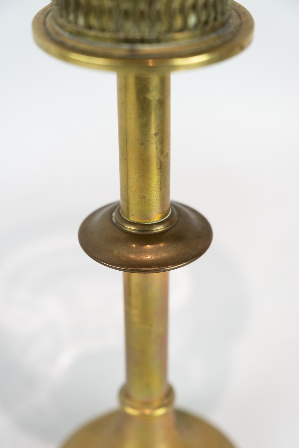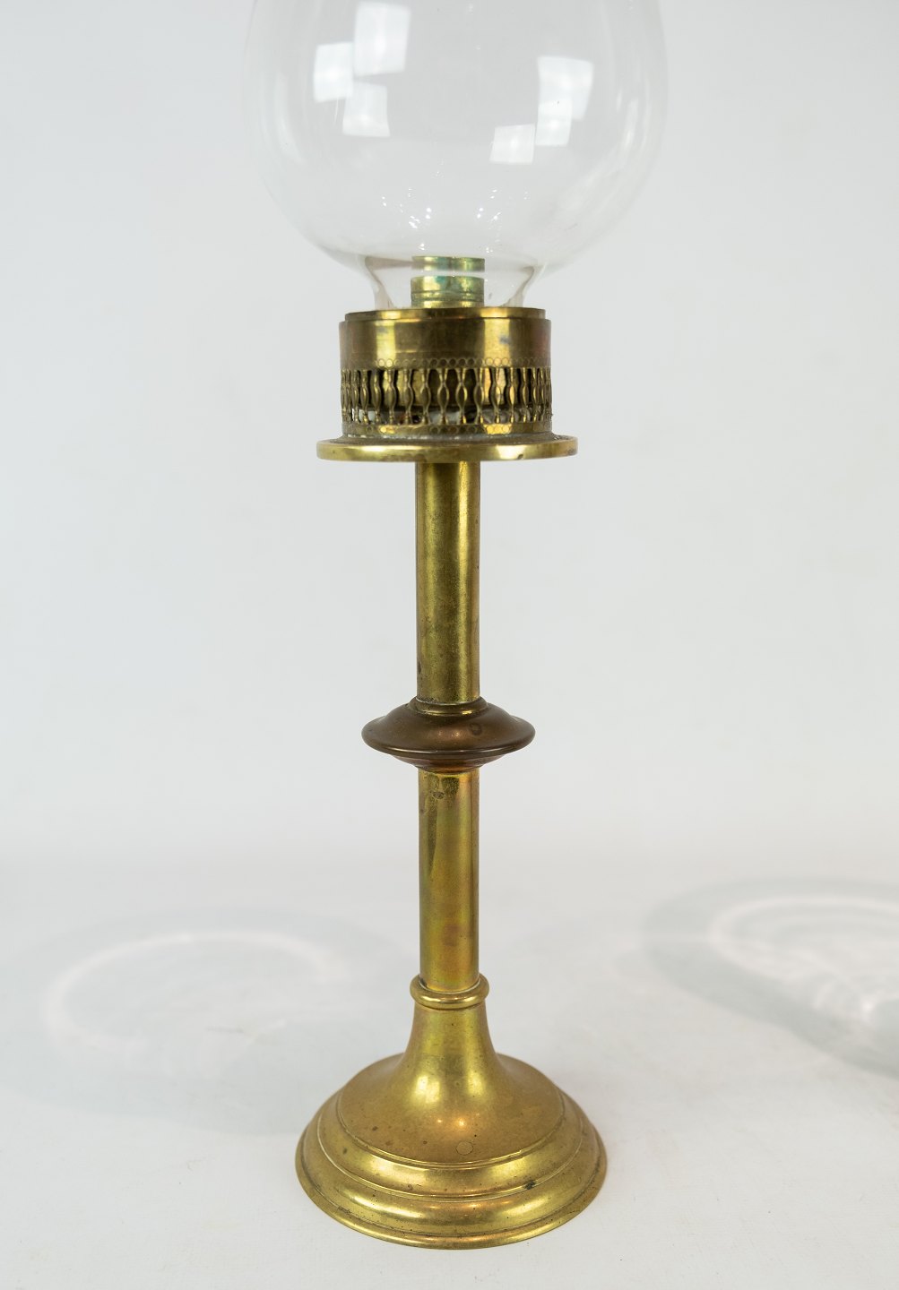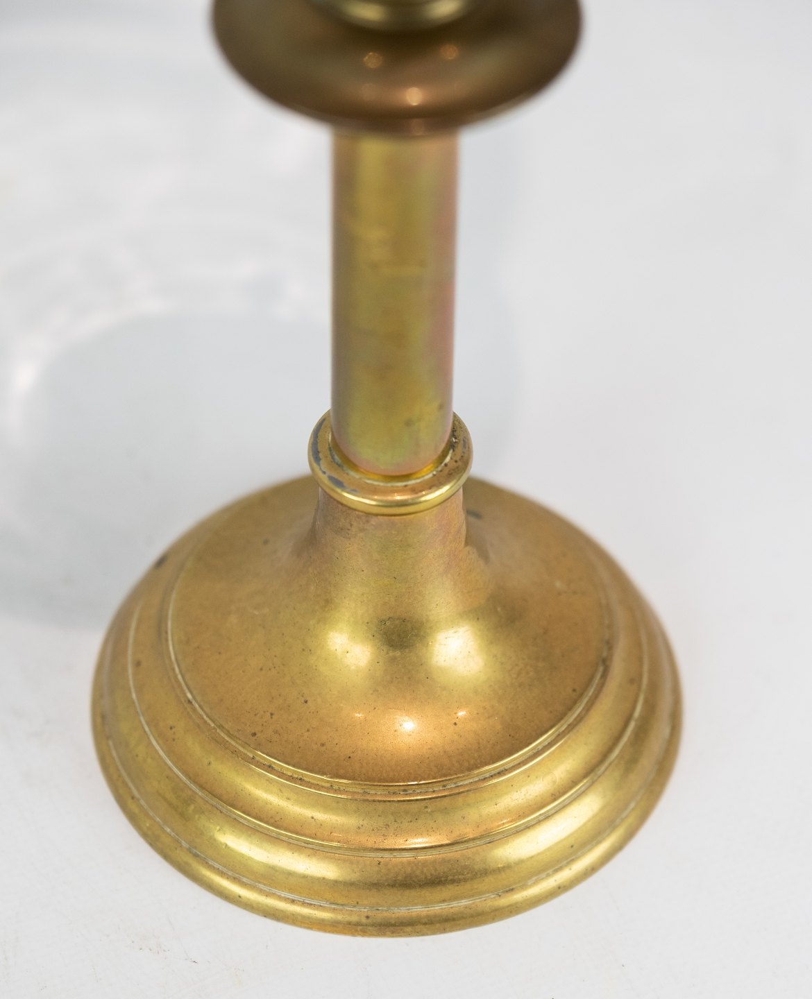 A pair of Hurricane candlesticks of brass and glass from the 1930s, both are in great vintage condition.