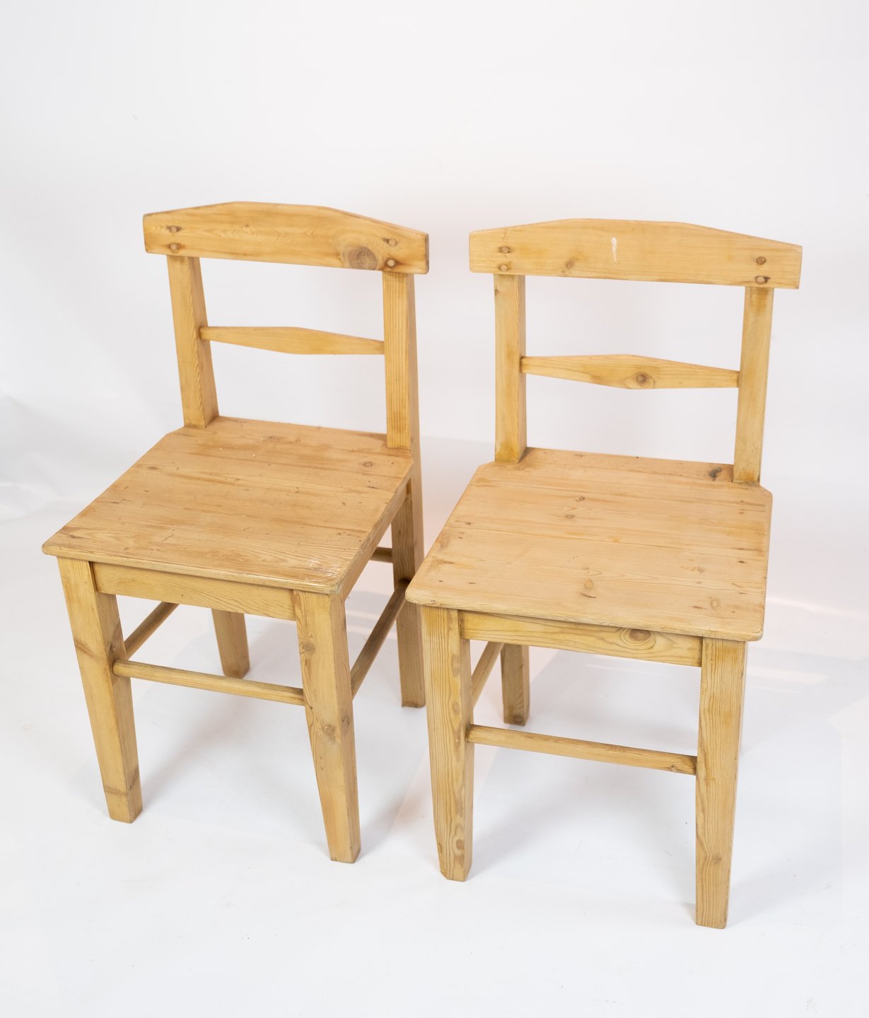 Et par antikke stole af fyrretræ, i flot stand fra 1850erne. Stolene sælges enkeltvis.