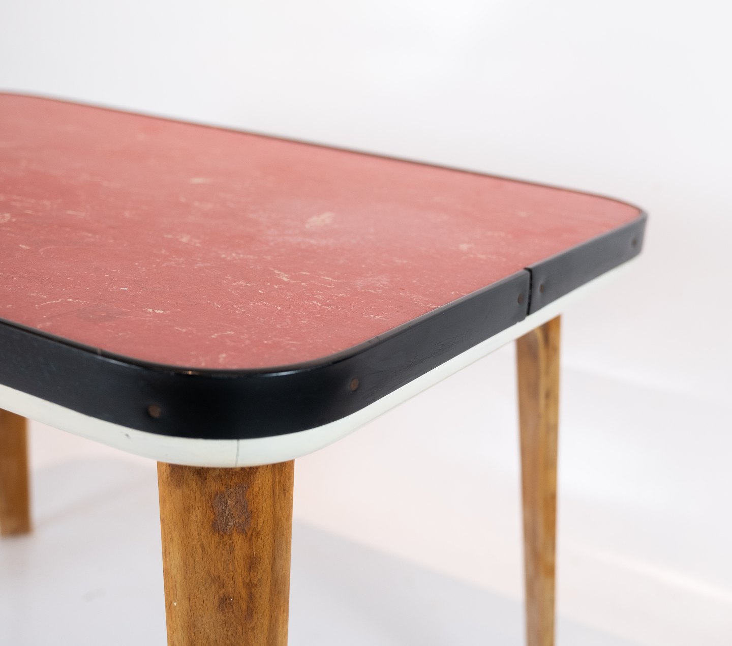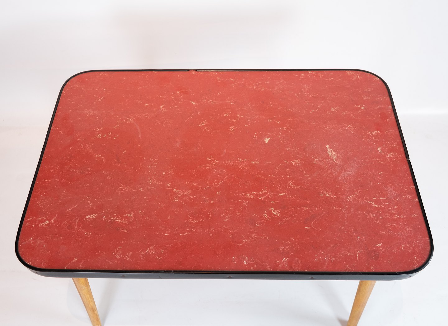 Sidebord med rød laminat af dansk design fra 1960erne. Bordet er i flot brugt stand.