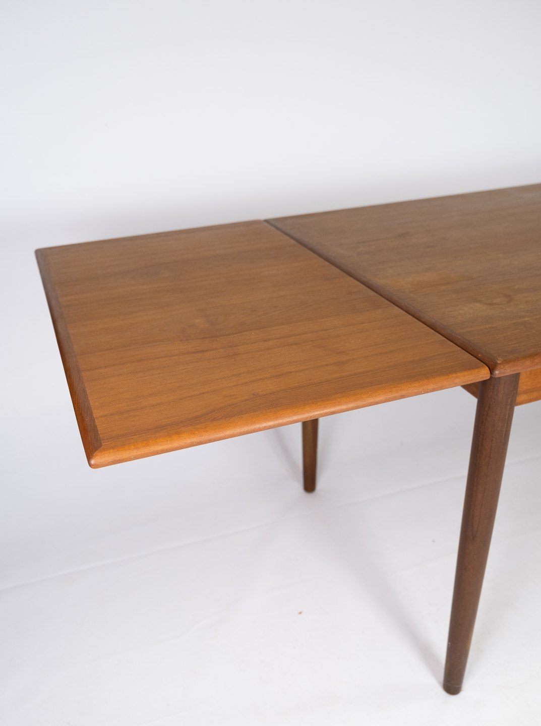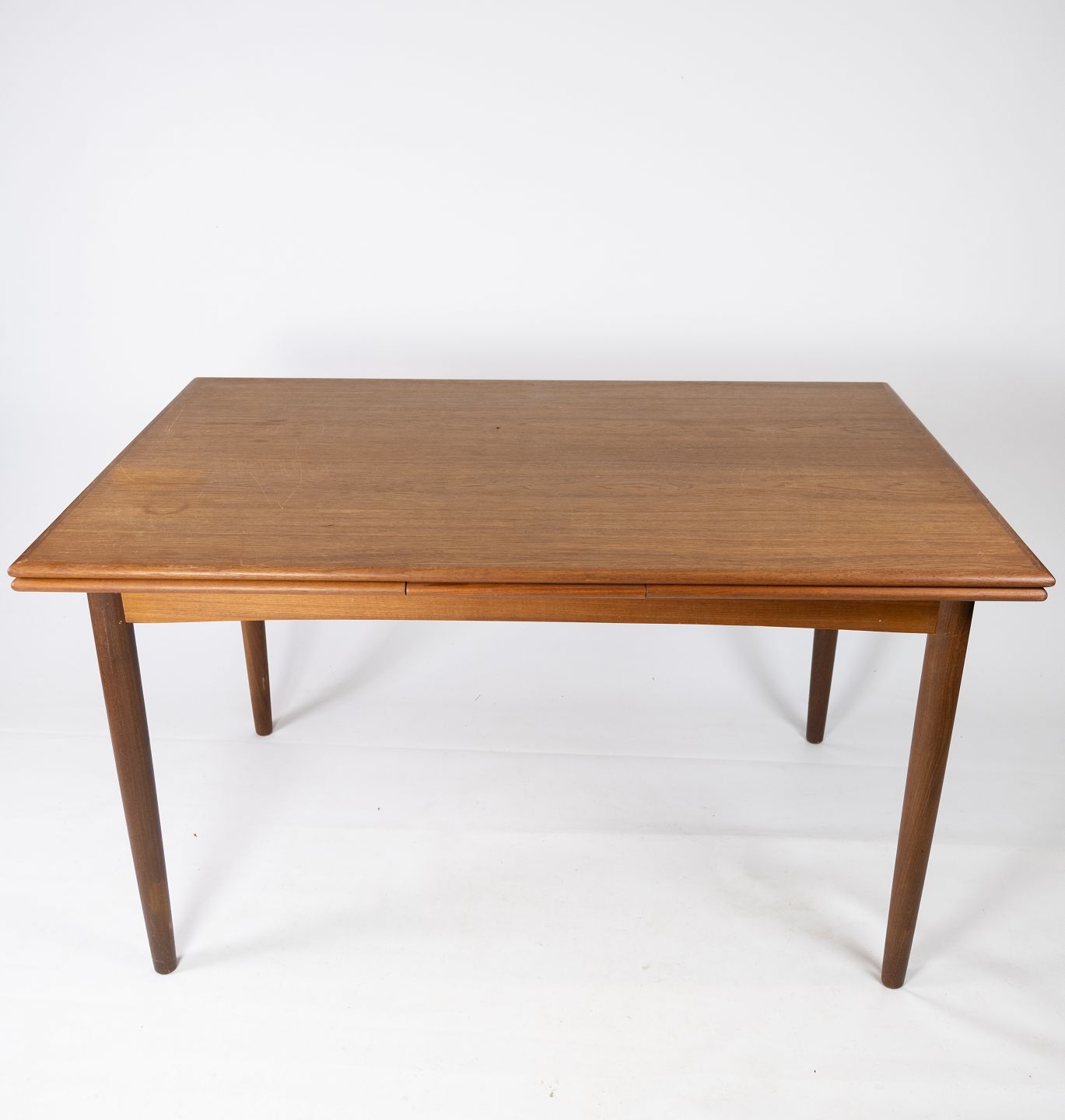 Spisebord i teak med hollandsk udtræk af dansk design fra 1960erne. Bordet er i flot brugt stand.