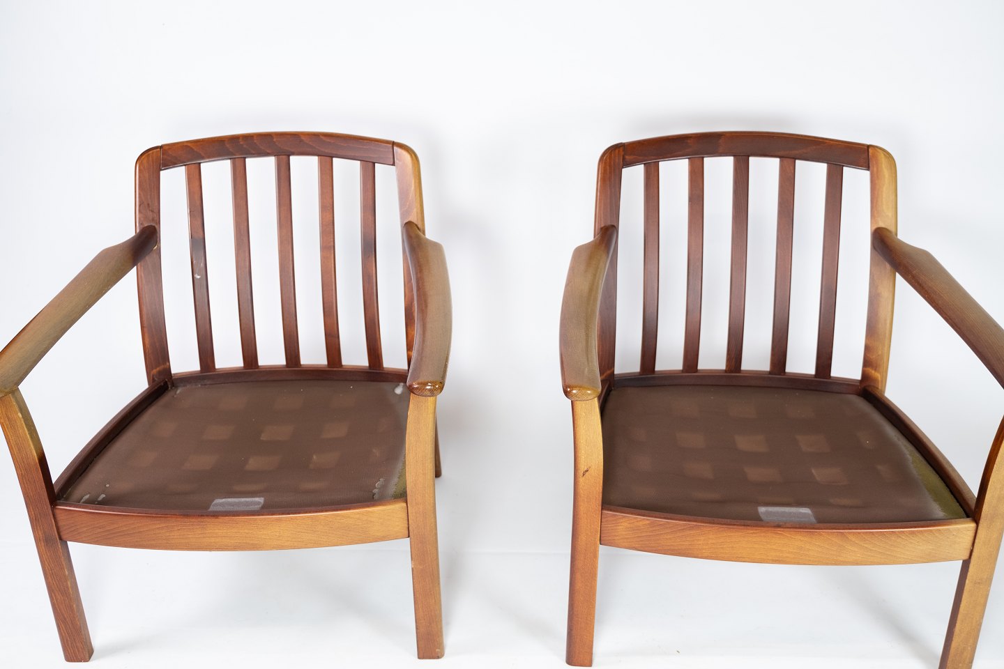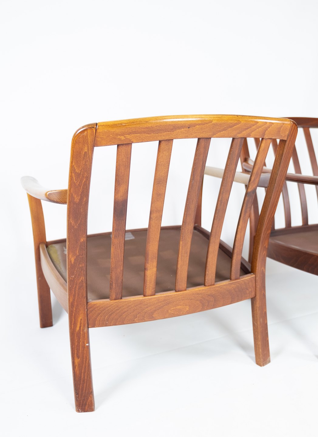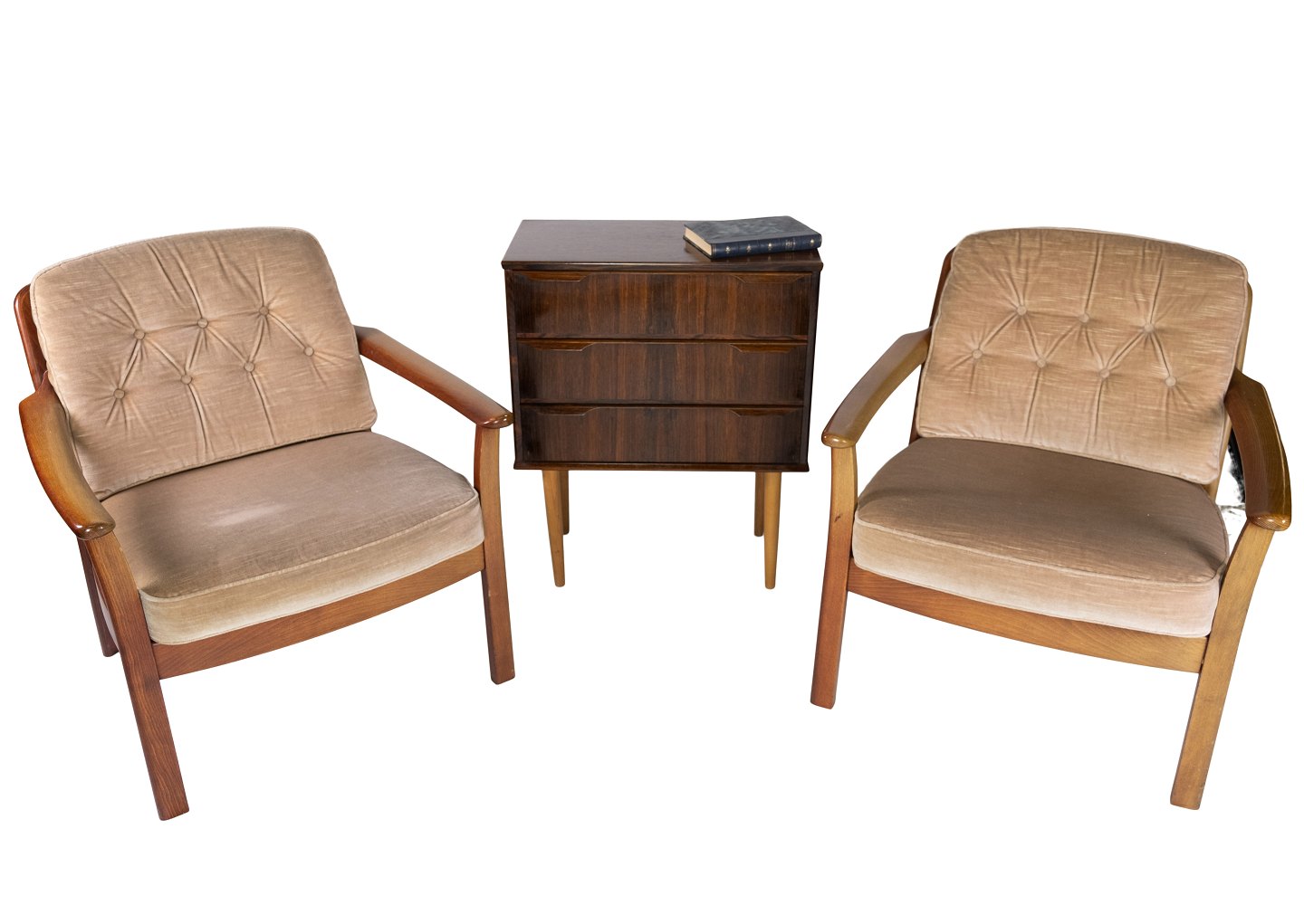 Et Sæt Hvilestole - Poleret Træ - Hynder I Velour - Dansk Design - 1960
