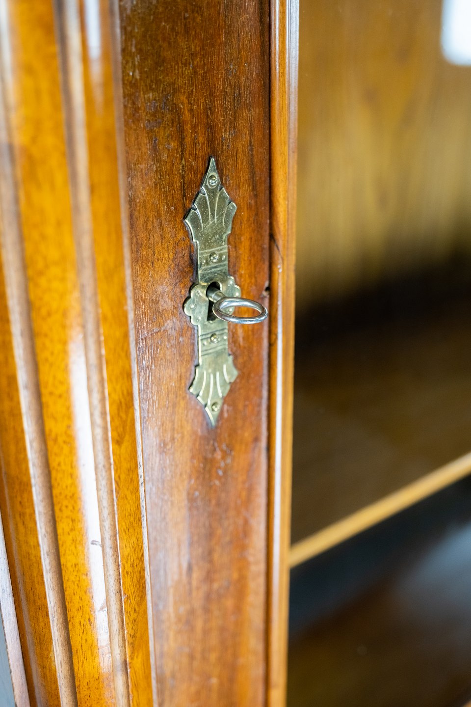 Vitrineskab af lys nøddetræ, i flot antik stand fra 1880erne.