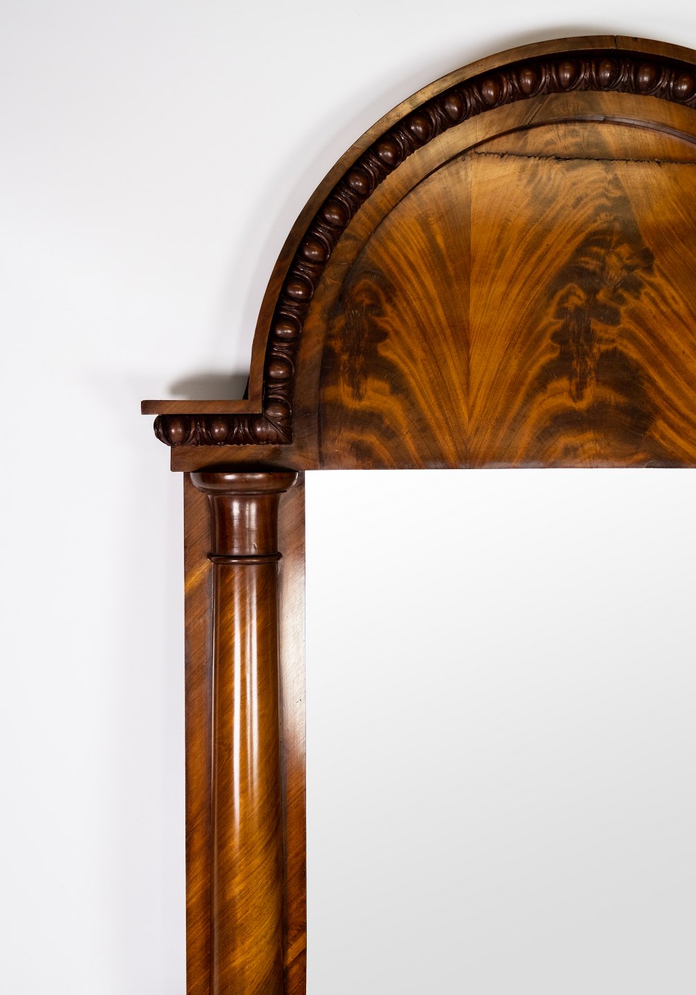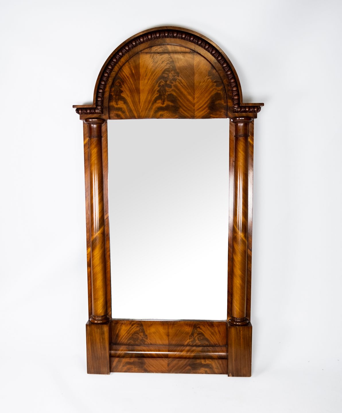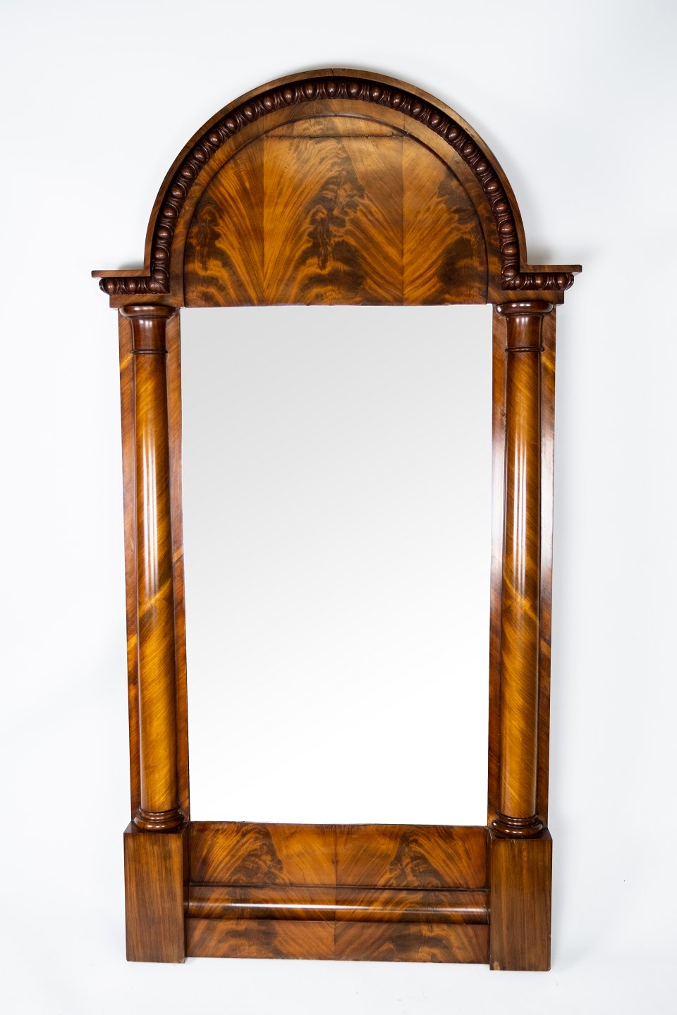 Højt spejl af poleret mahogni, i flot stand fra 1860erne.