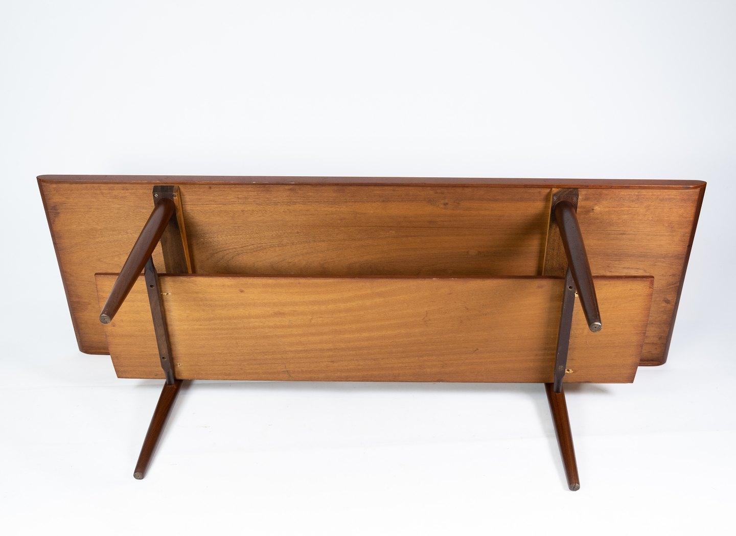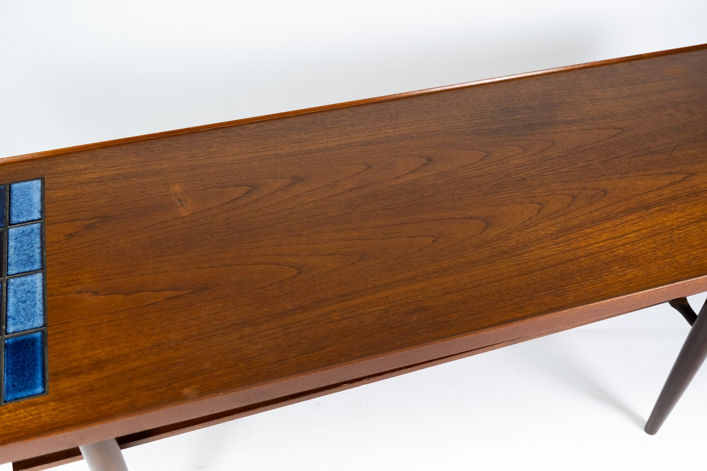 Sofabord i teak med blå klinker af dansk design fra 1960erne.