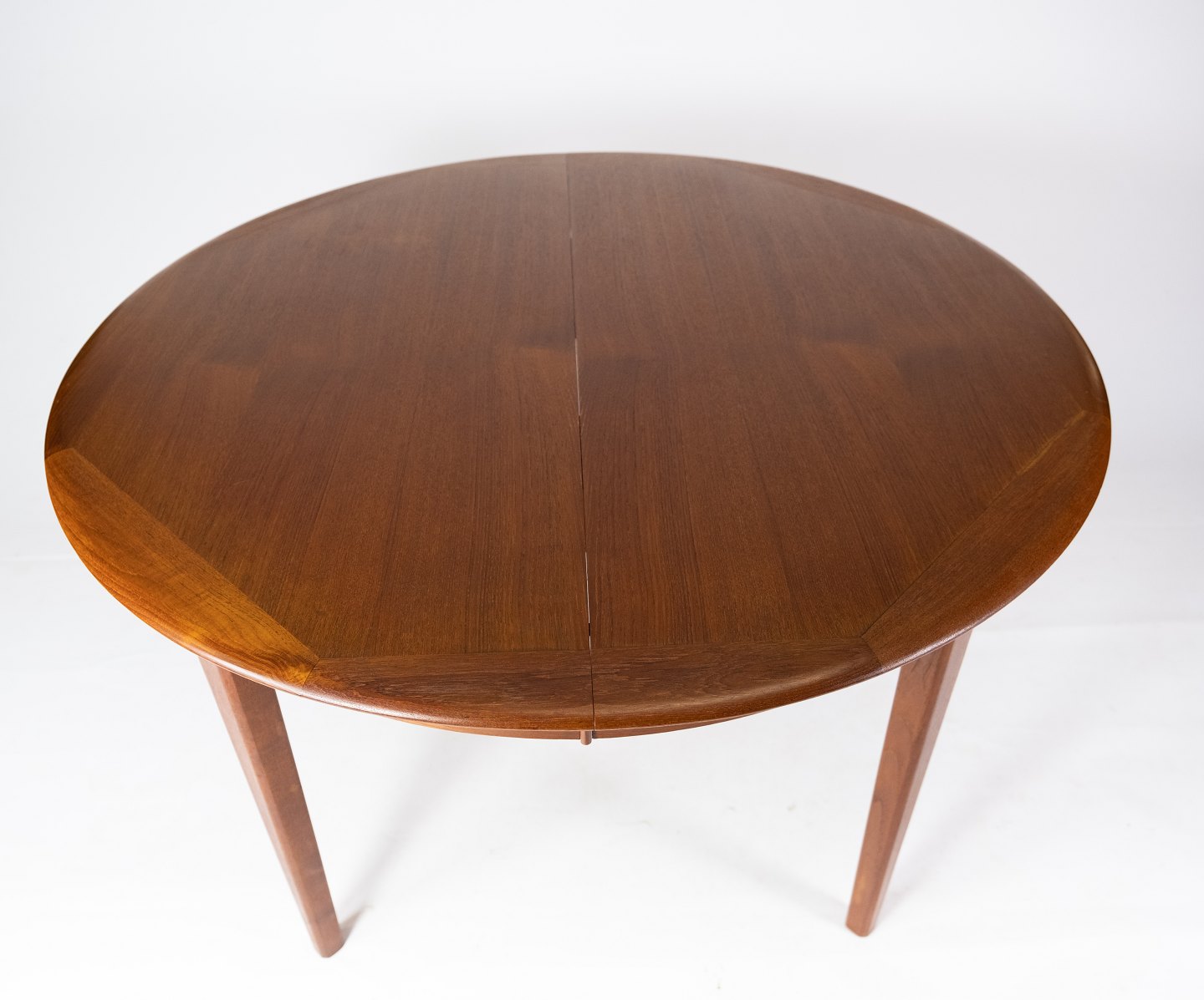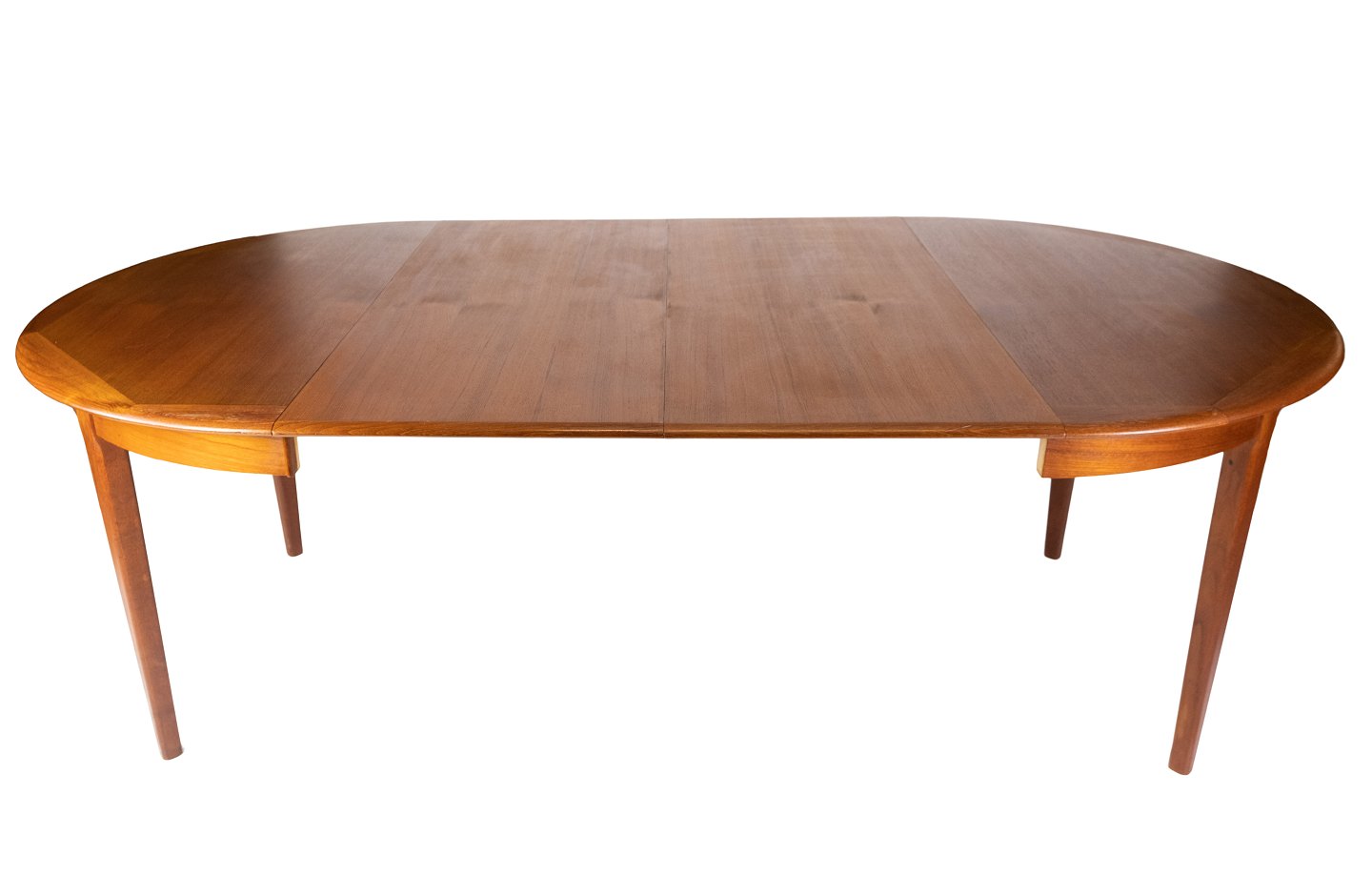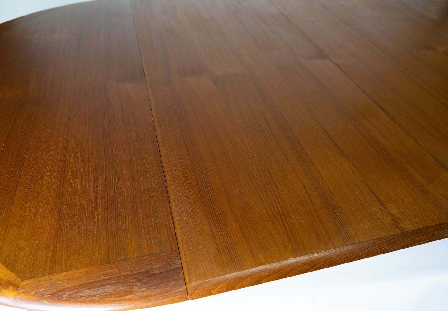 Spisebord i teak af dansk design fra 1960erne. Bordet er i flot brugt stand, samt med to tilhørende tillægsplader.