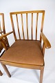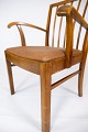 Sæt Af To Armstole - Lyst Træ - Lysebrunt Læder - Dansk Snedkermester - 1940