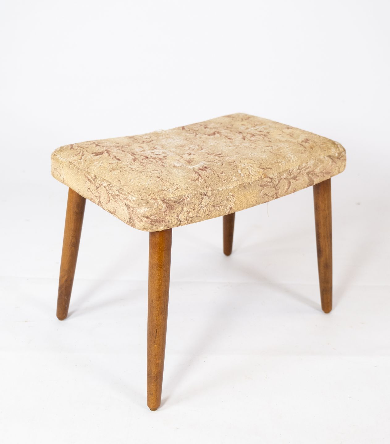 Skammel - Teak - Blomstret Stof - Dansk Design - 1970