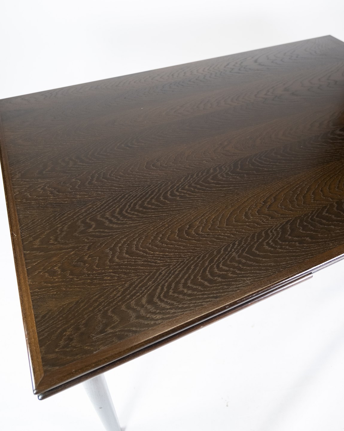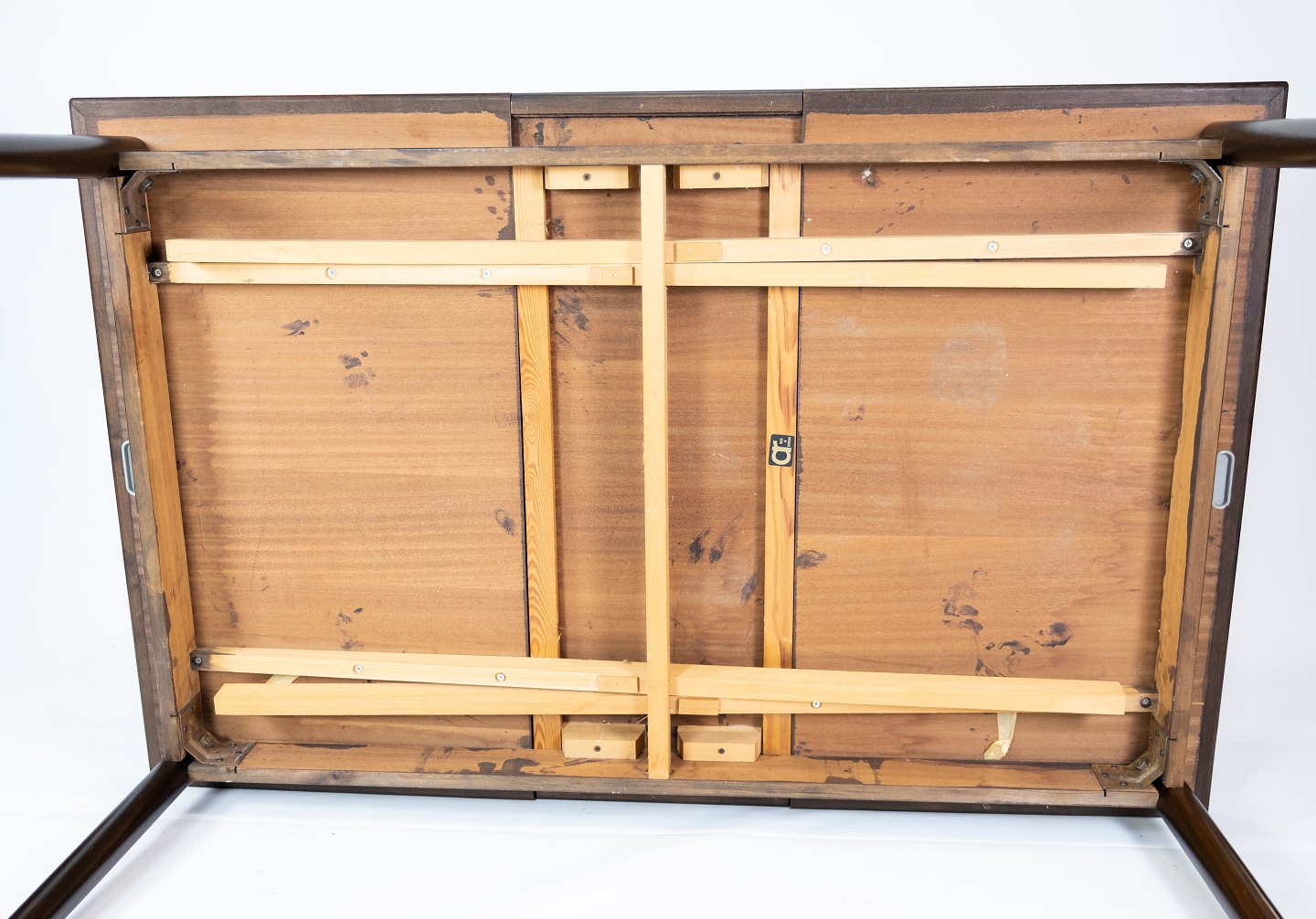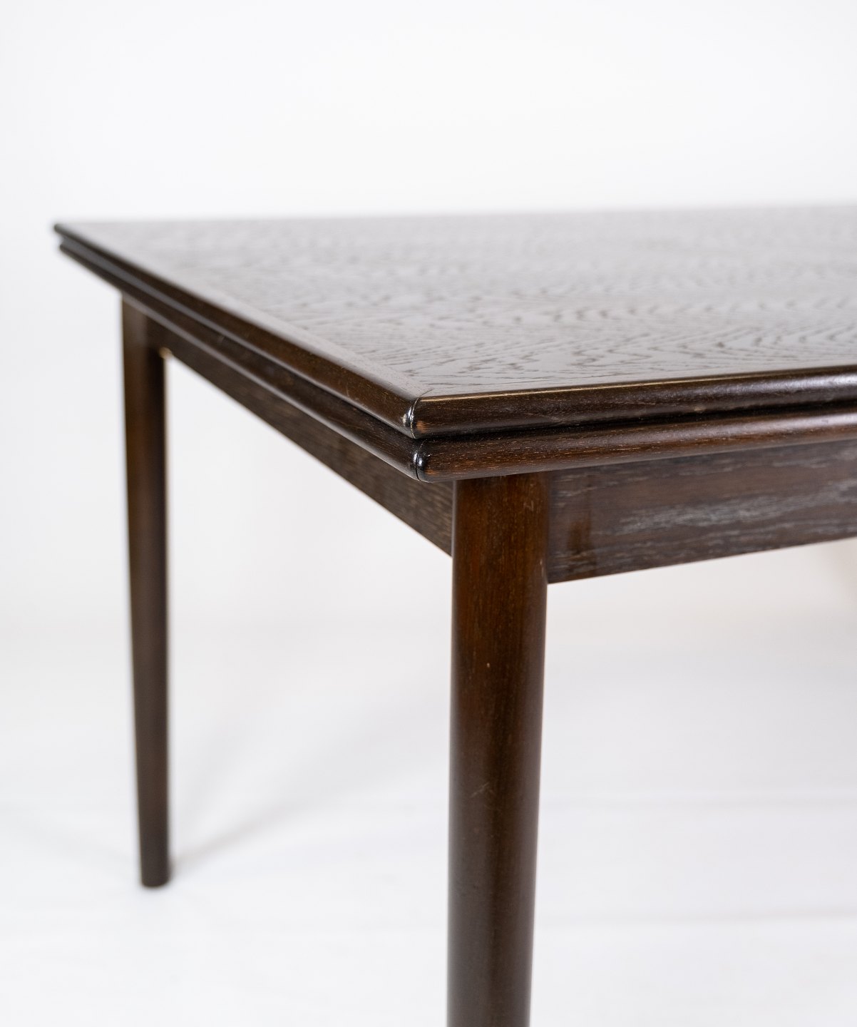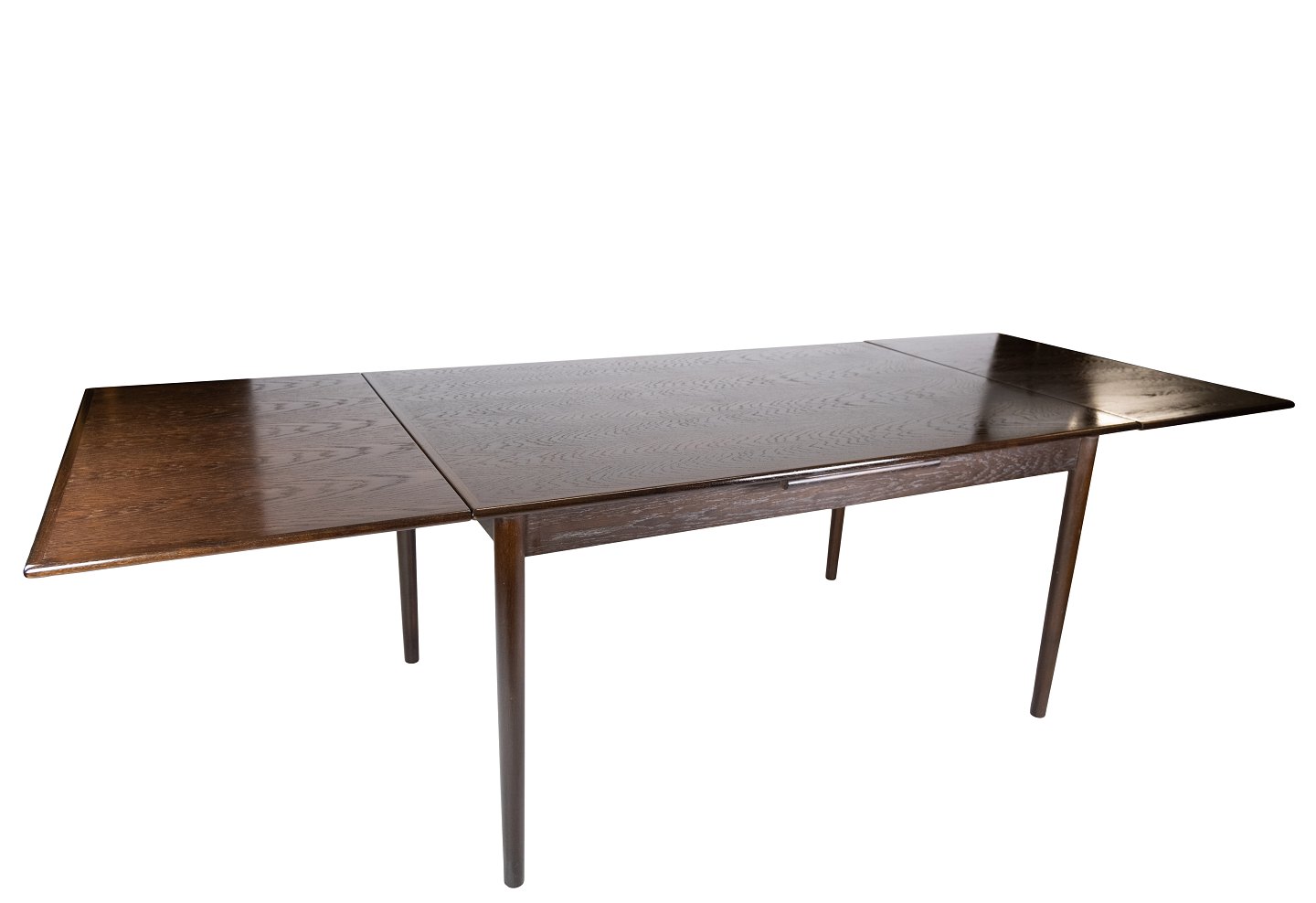 Spisebord i mørk eg med hollandsk udtræk af dansk design fra 1960erne. Bordet er i flot brugt stand.