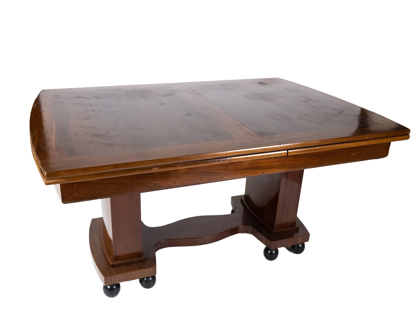 Antikt spisebord i mahogni og med hollandsk udtræk fra 1920erne. Bordet er i flot brugt stand.