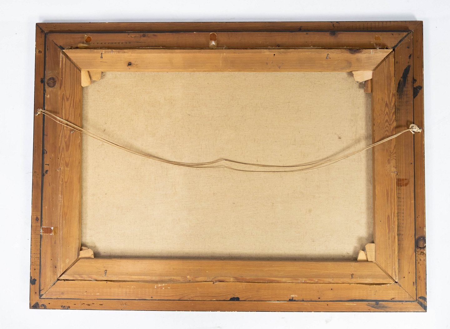 Oliemaleri med vintermotiv og sort malet ramme, med ukendt signatur fra 1920erne.
