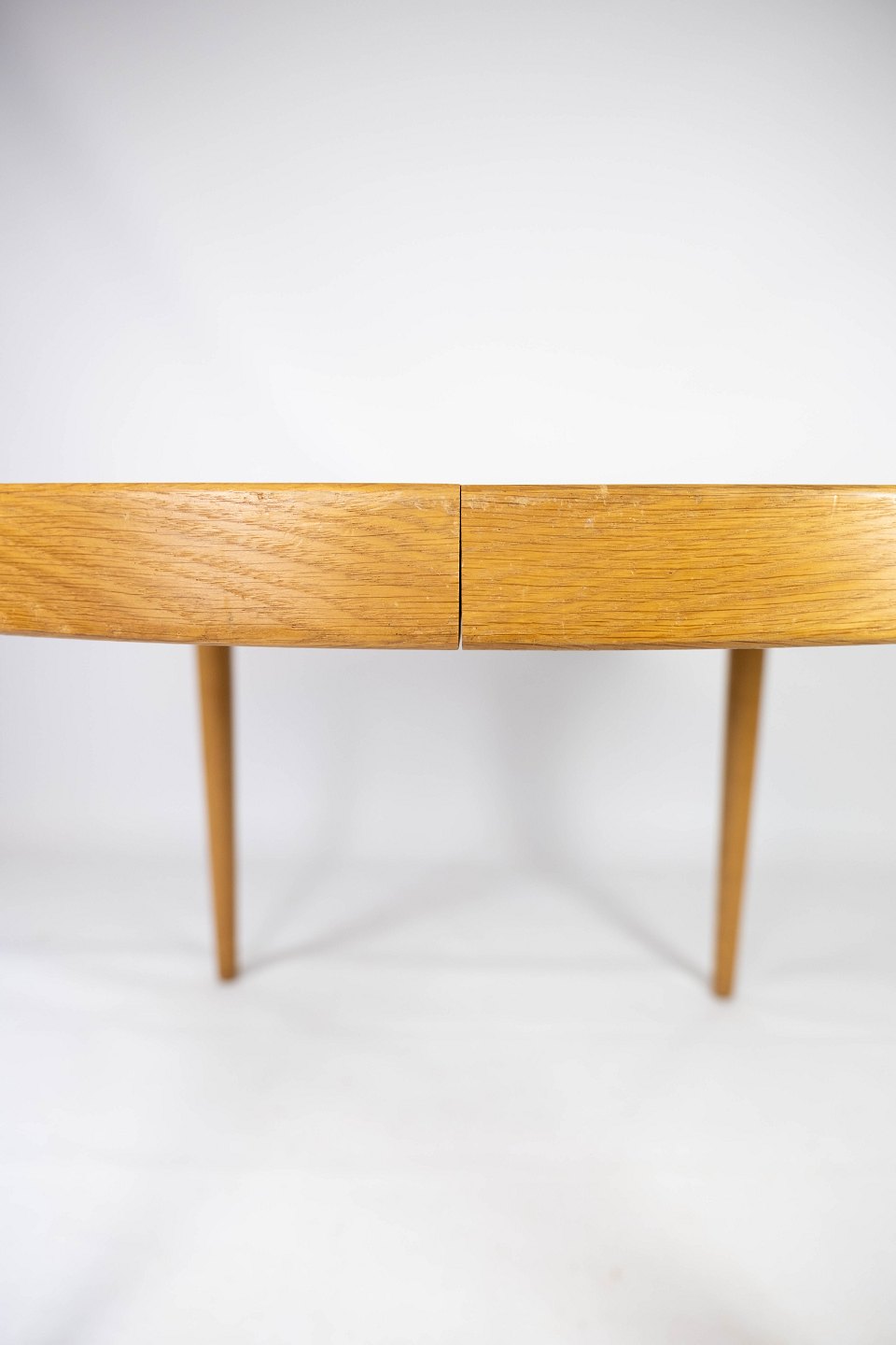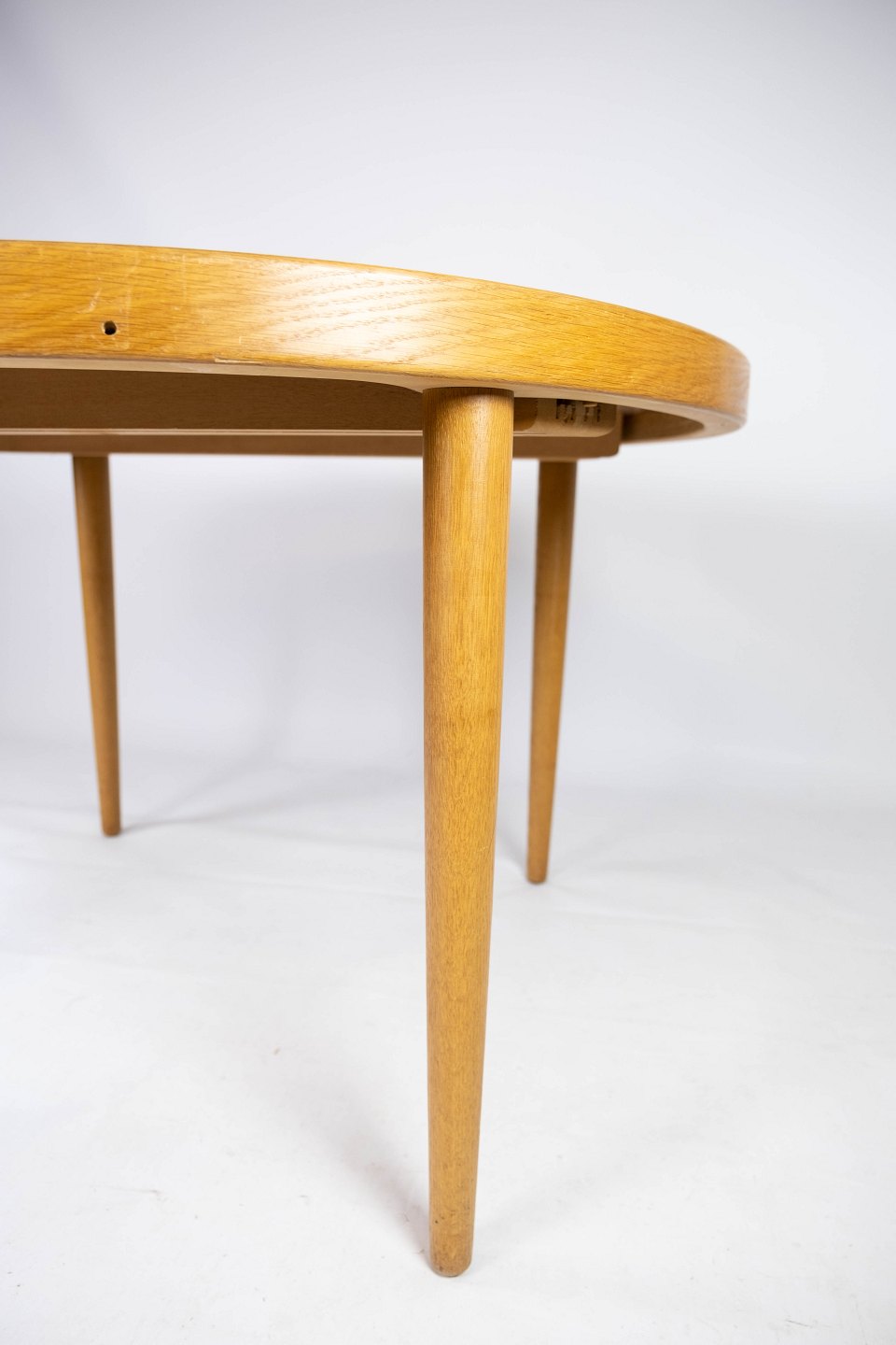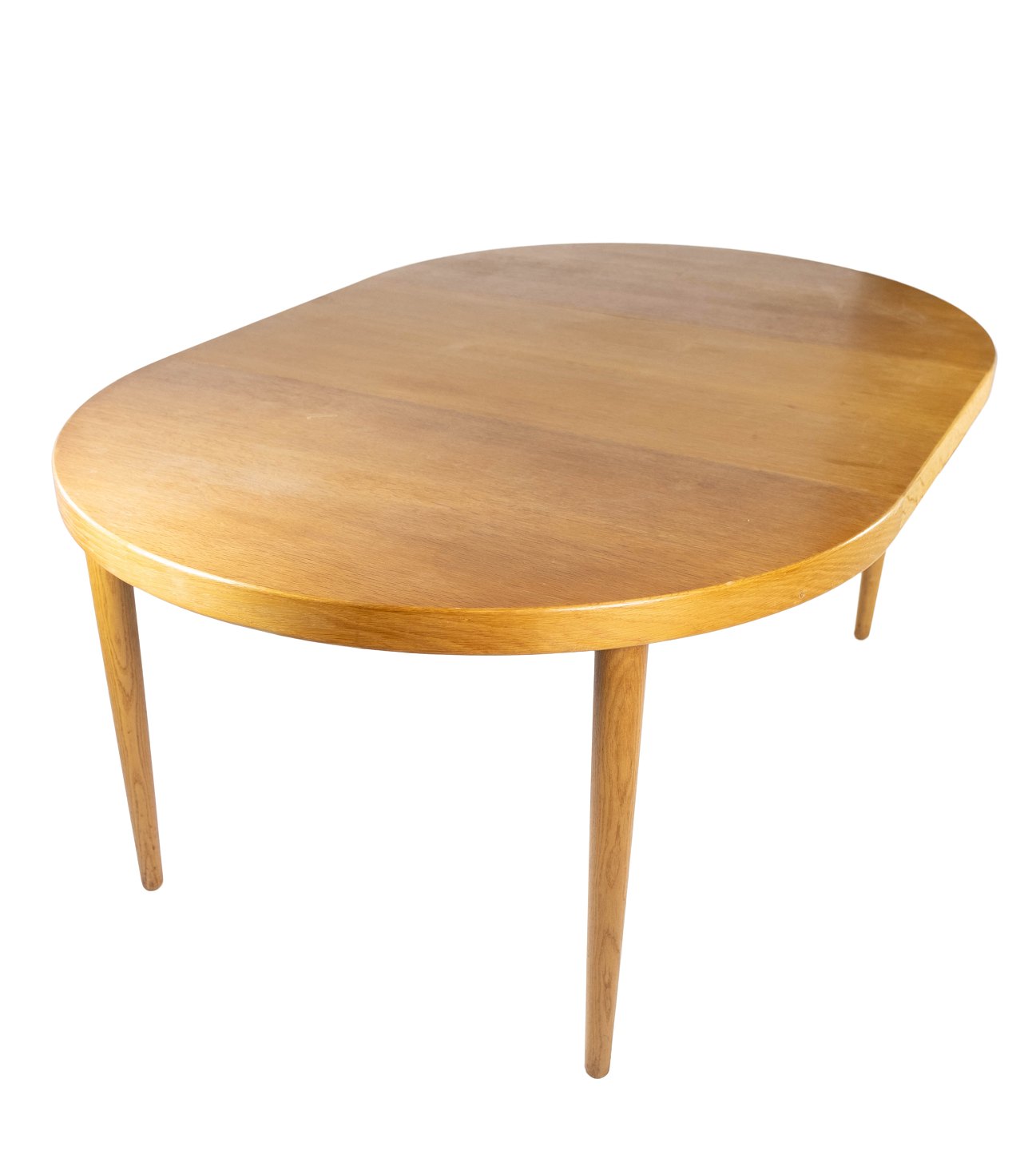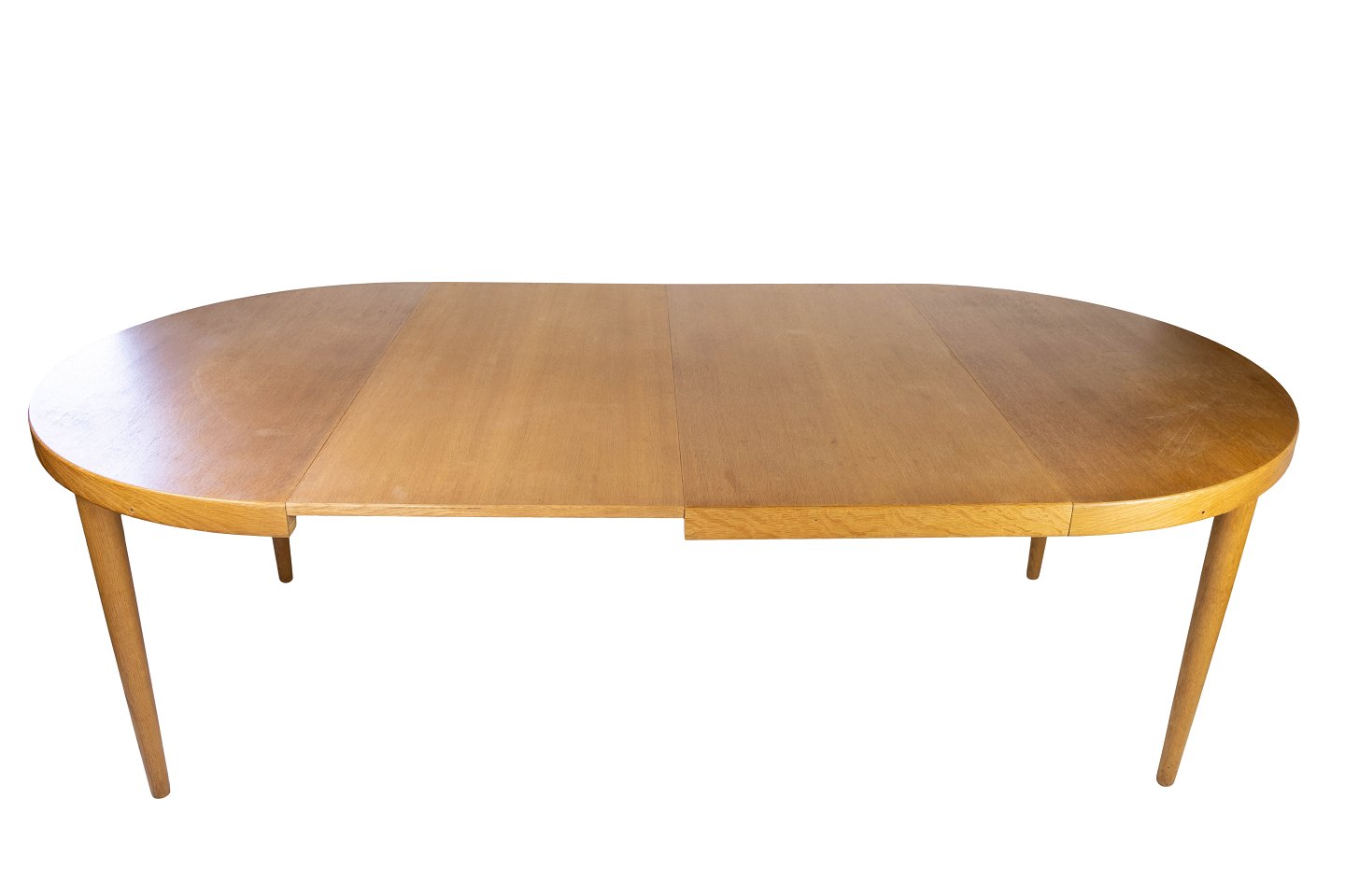 SolgtSpisebord i eg med to tillægsplader designet af Omann Junior fra 1960erne. Bordet er i flot brugt stand.