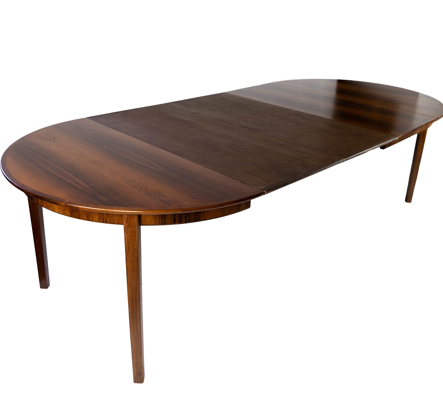 Spisebord i palisander med tre udtræksplader, af dansk design fra 1960erne. Bordet er i flot brugt stand.