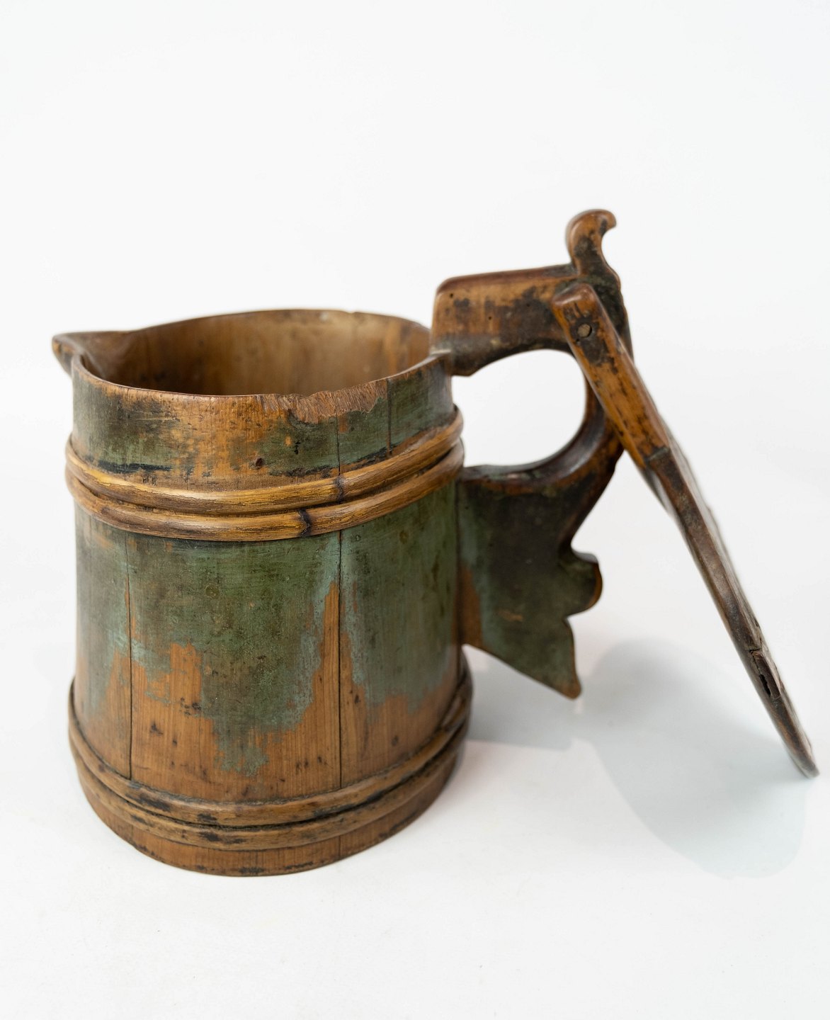 Antique jug of dark wood with original colours and in great vintage condition from 1860.