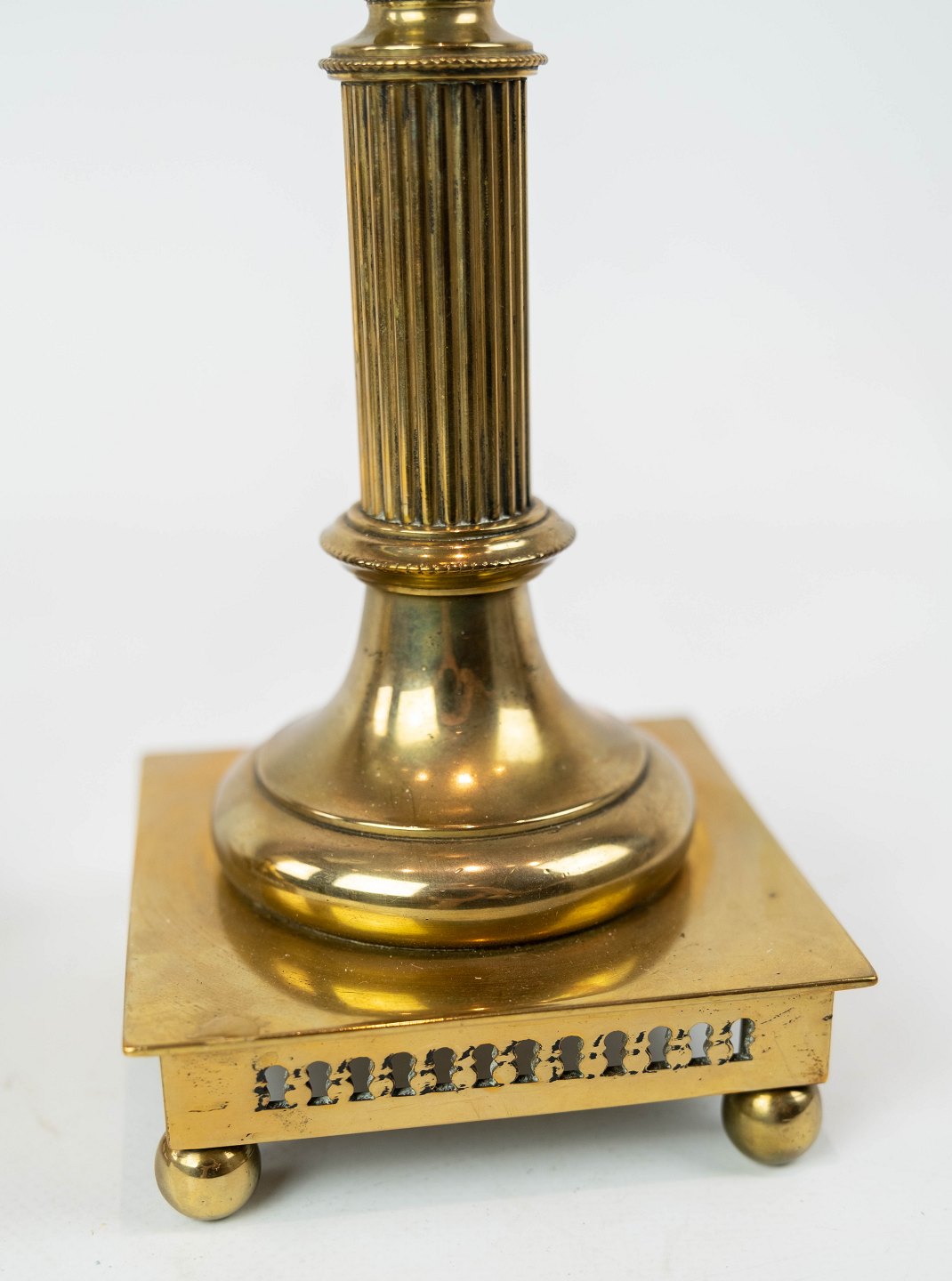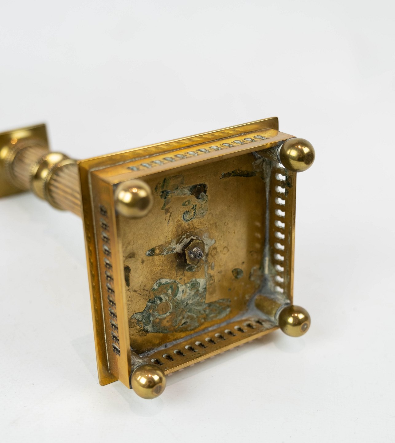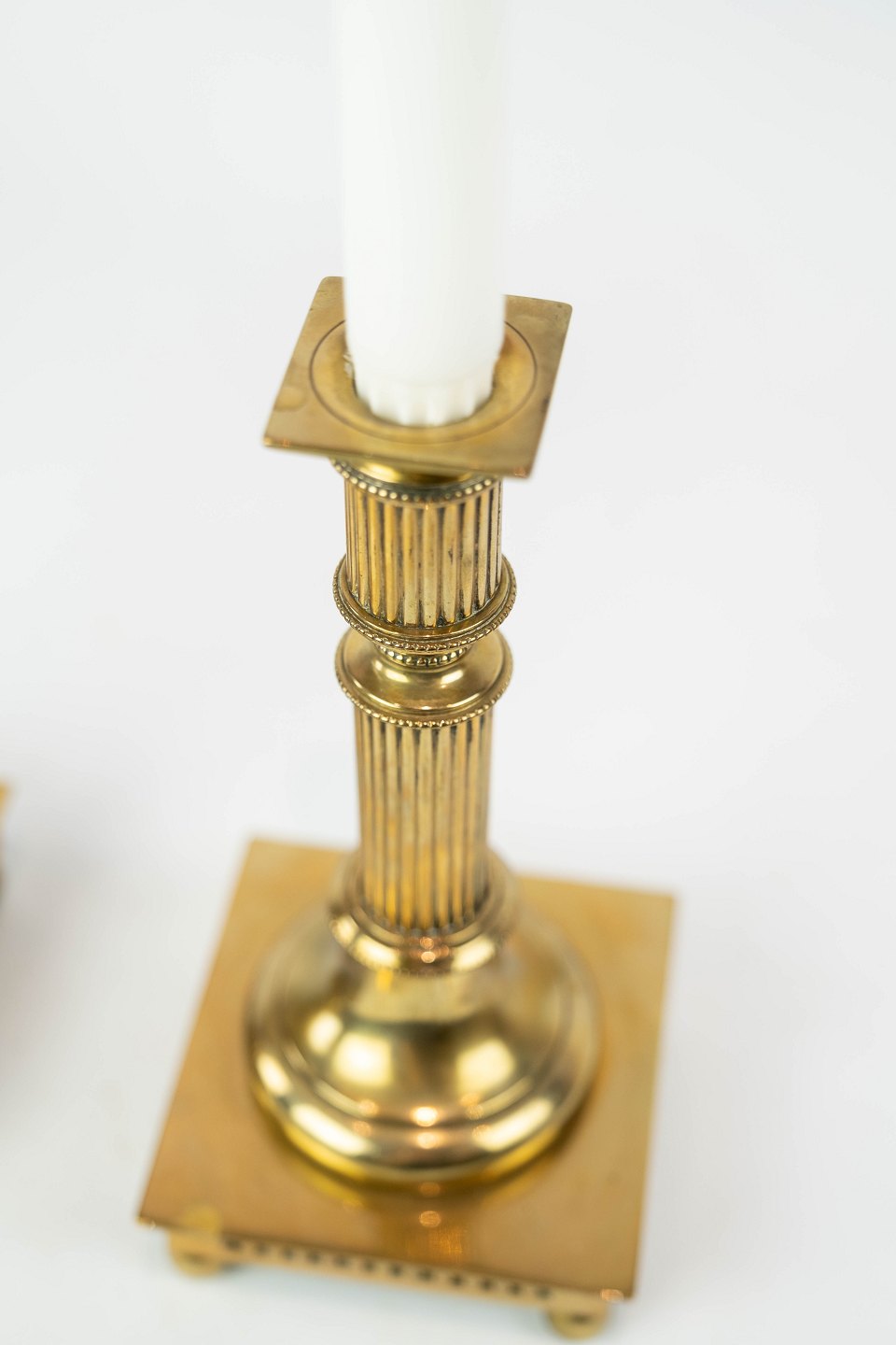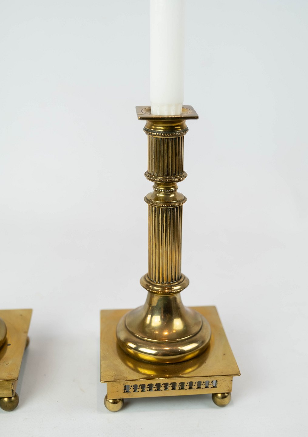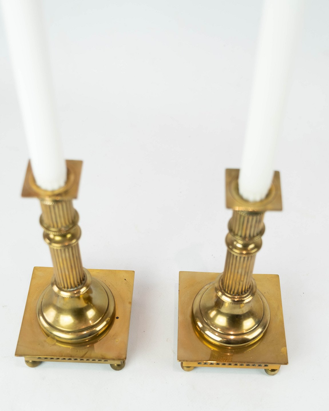 SolgtSæt af to lysestager i messing, i flot antik stand fra 1920erne.