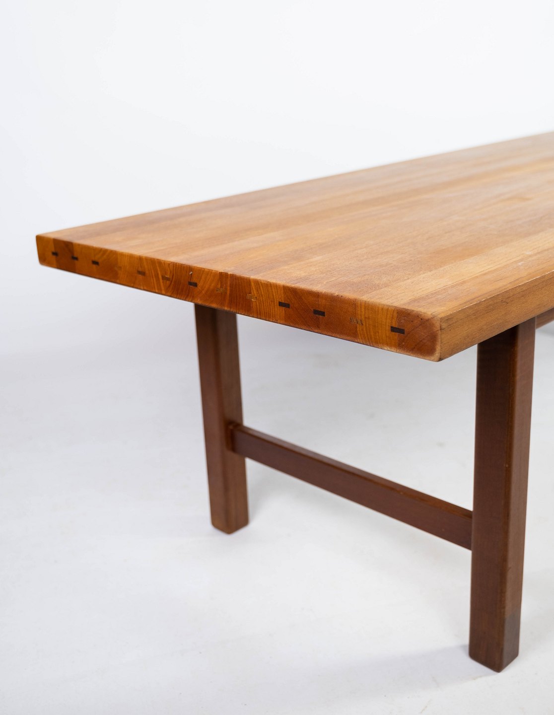 Dette sofaborde i teak fra 1960'erne bærer præg af den fremragende håndværksmæssige kvalitet og tidløse æstetik, som Edmund Jørgensen Møbelfabrik er kendt for. Med sit elegante design og smukke træstruktur tilføjer bordet en varm og indbydende atmosfære til ethvert rum.