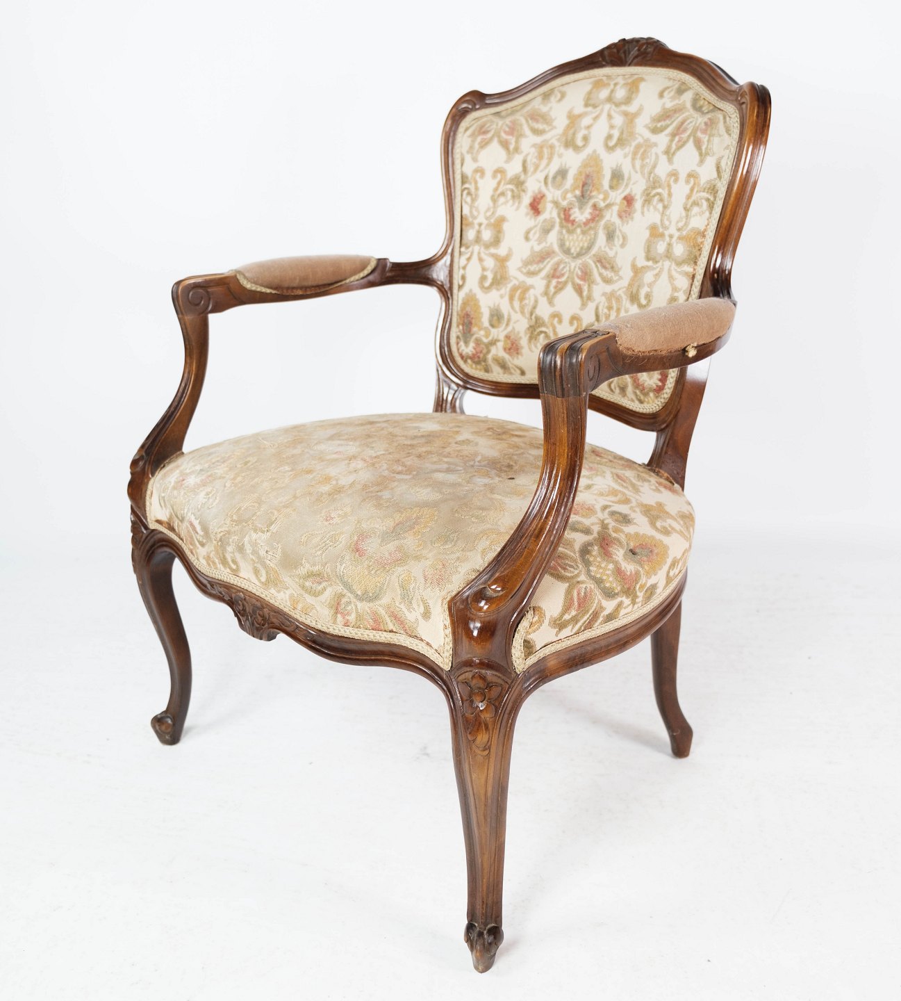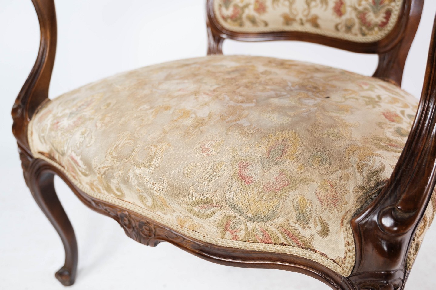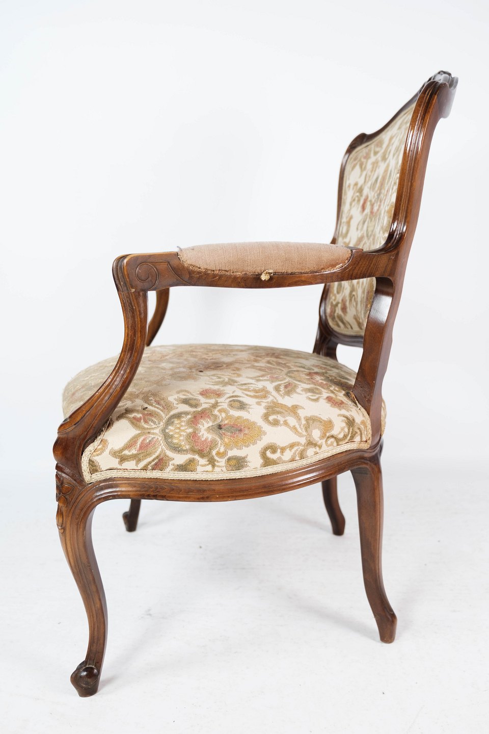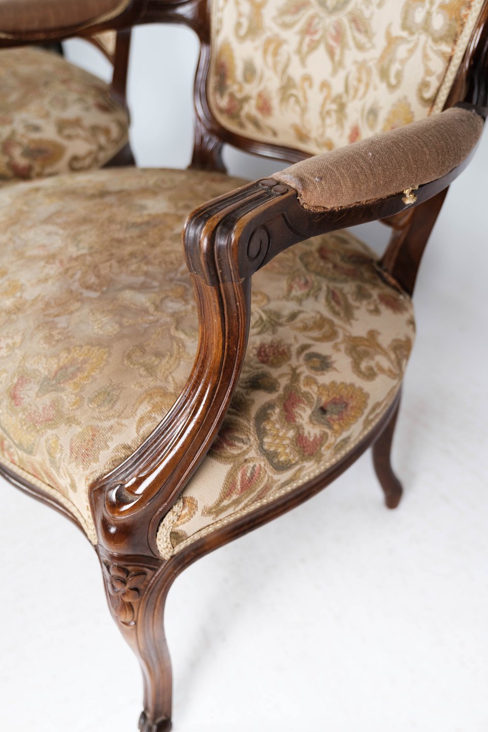 Sæt af Rokoko armstole af mahogni og polstret med lyst stof, i flot antik stand fra 1920erne.