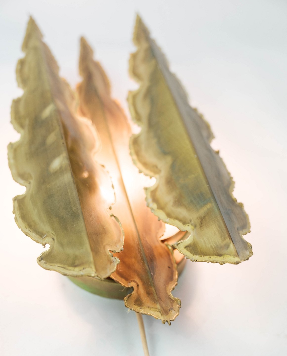 Væglampe i form af forgyldte blade af dansk design fra Holm-Sørensen og Pedersen Belysning.