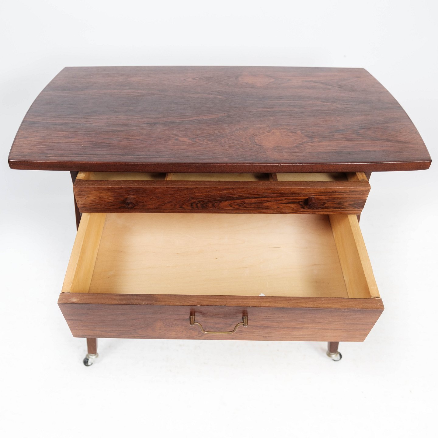 Sidebord i palisander på hjul af dansk design fra 1960erne. Bordet er i flot brugt stand.