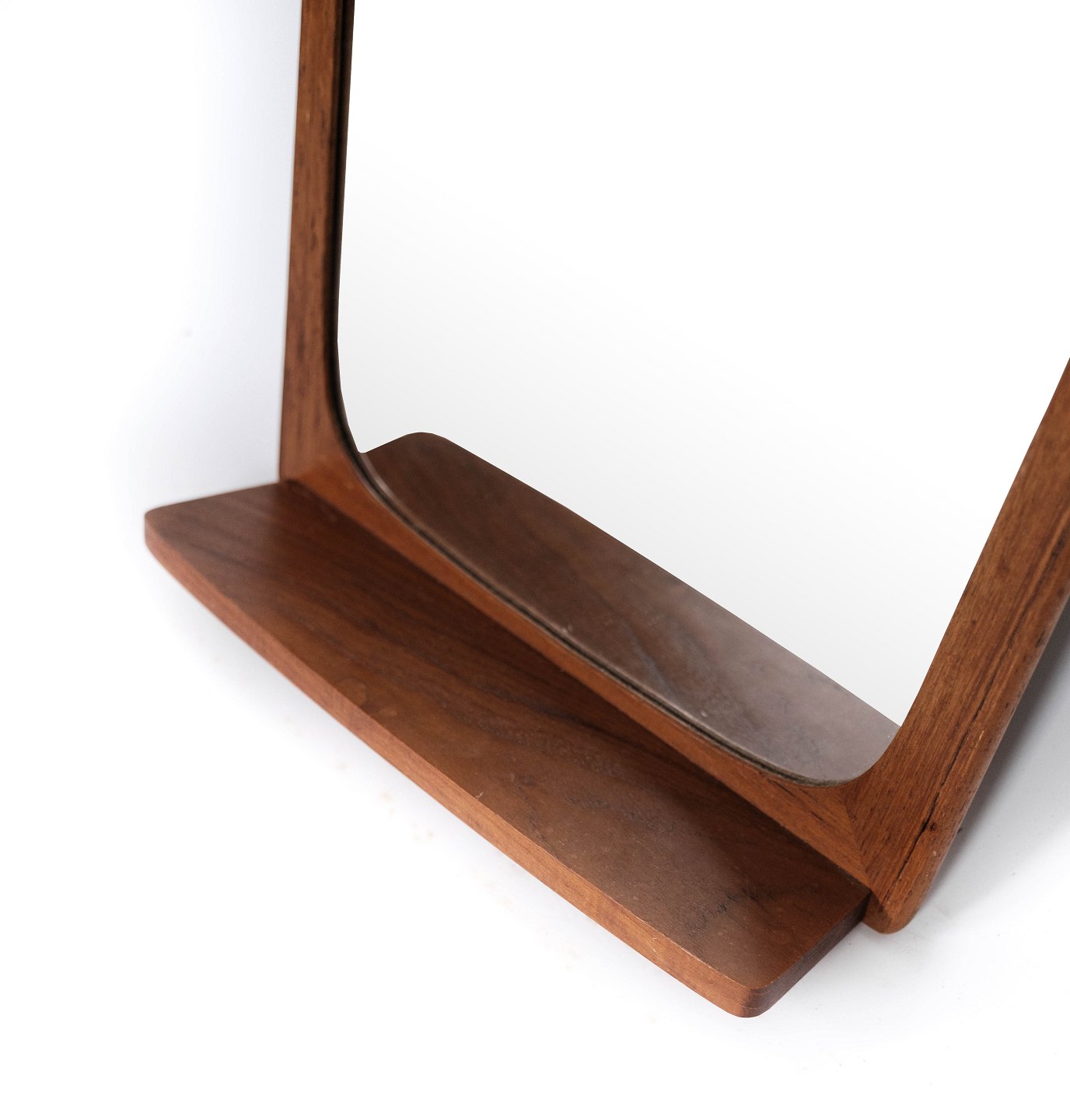 Spejl i teak med hylde af dansk design fra 1960erne. Spejlet er i flot brugt stand.