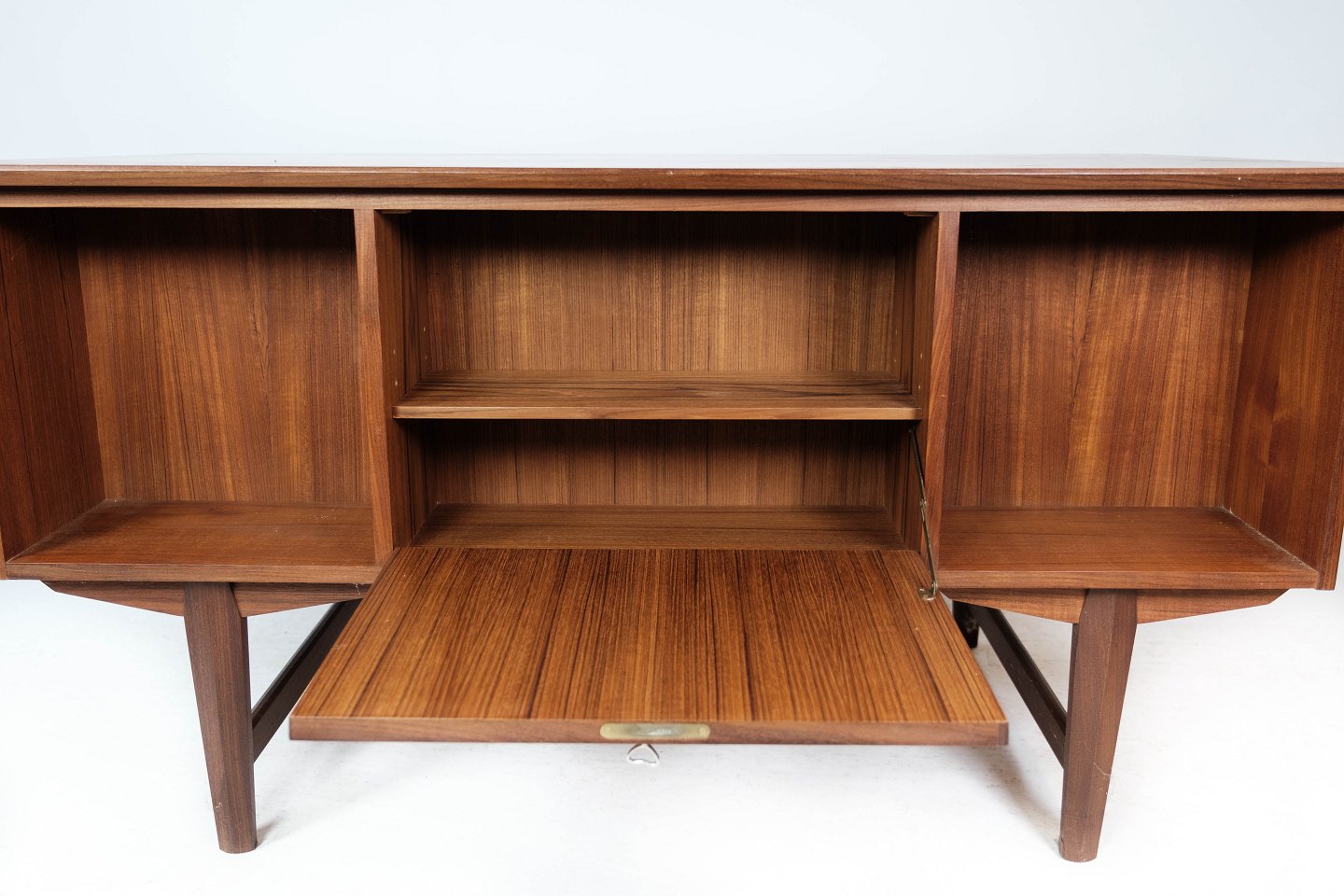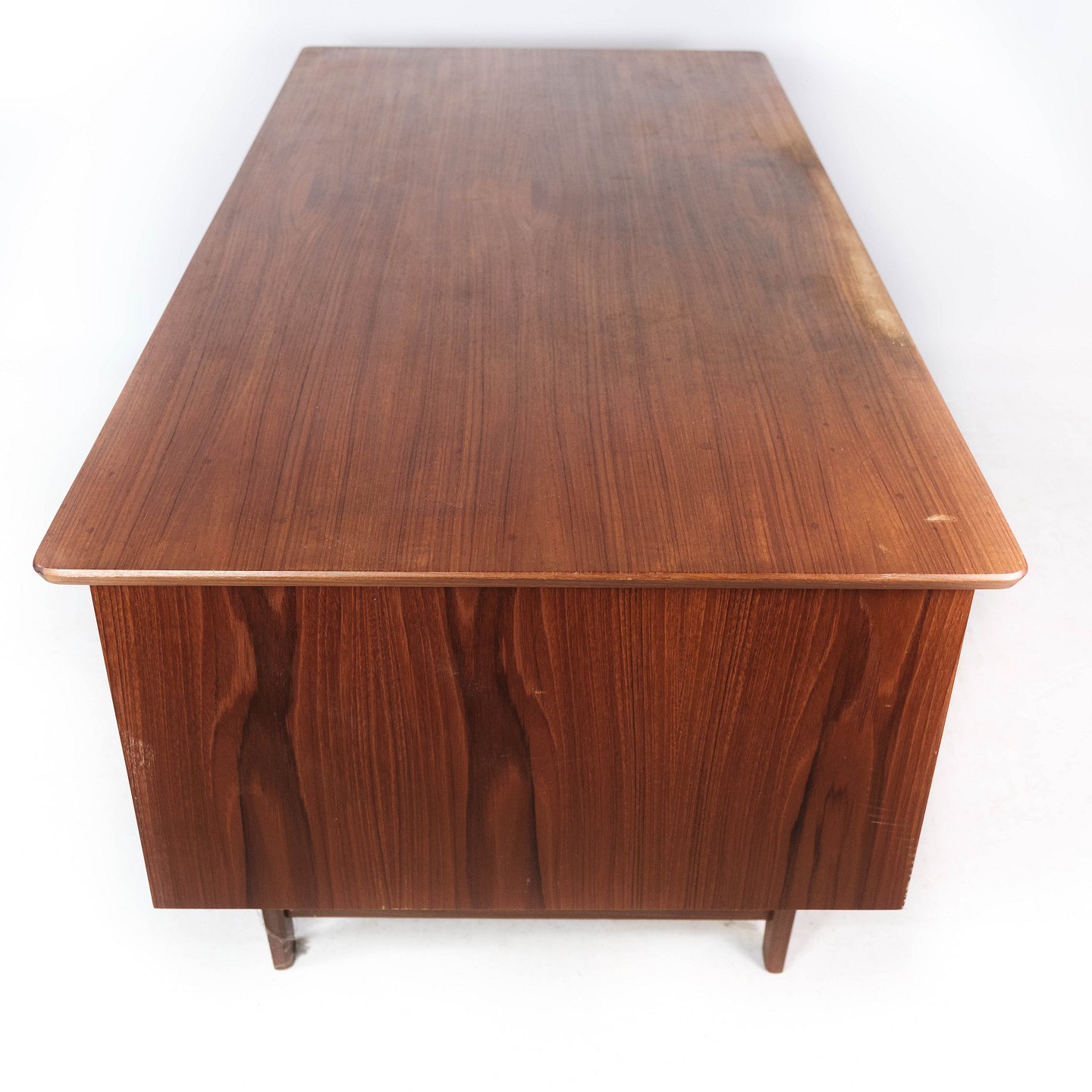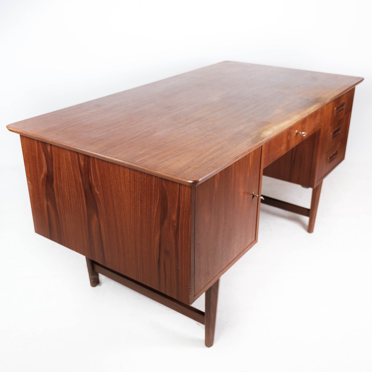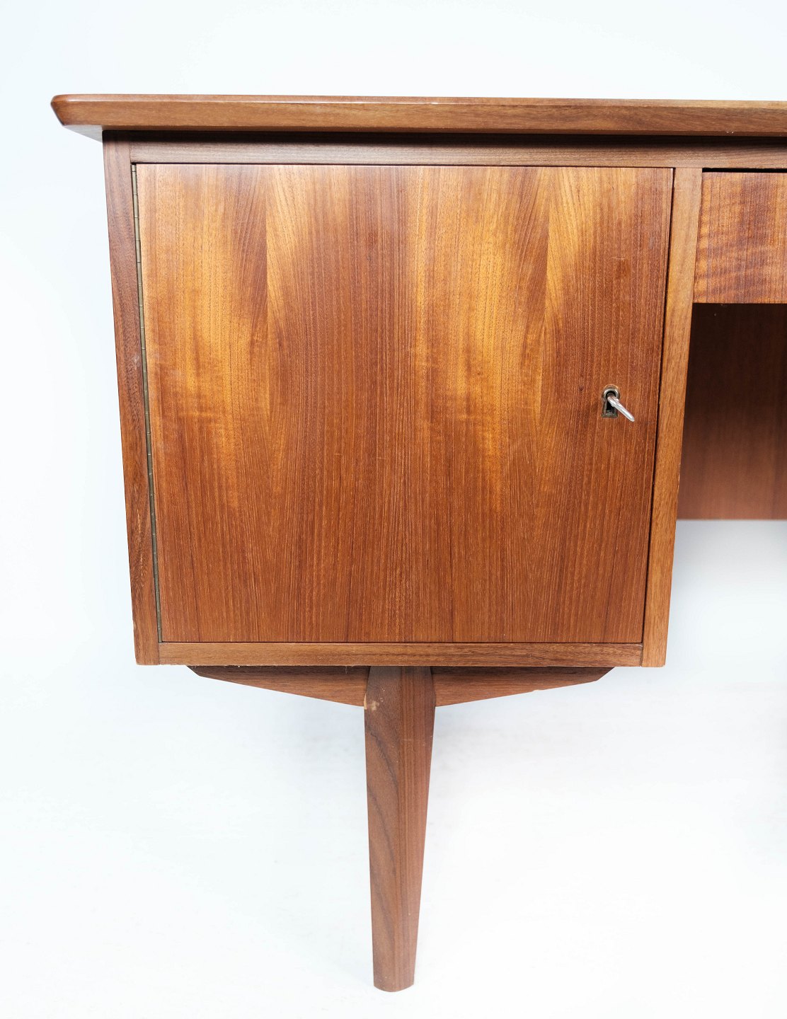 SolgtSkrivebord i teak af dansk design fra 1960erne. Bordet er i flot brugt stand.