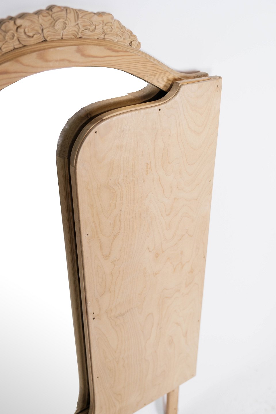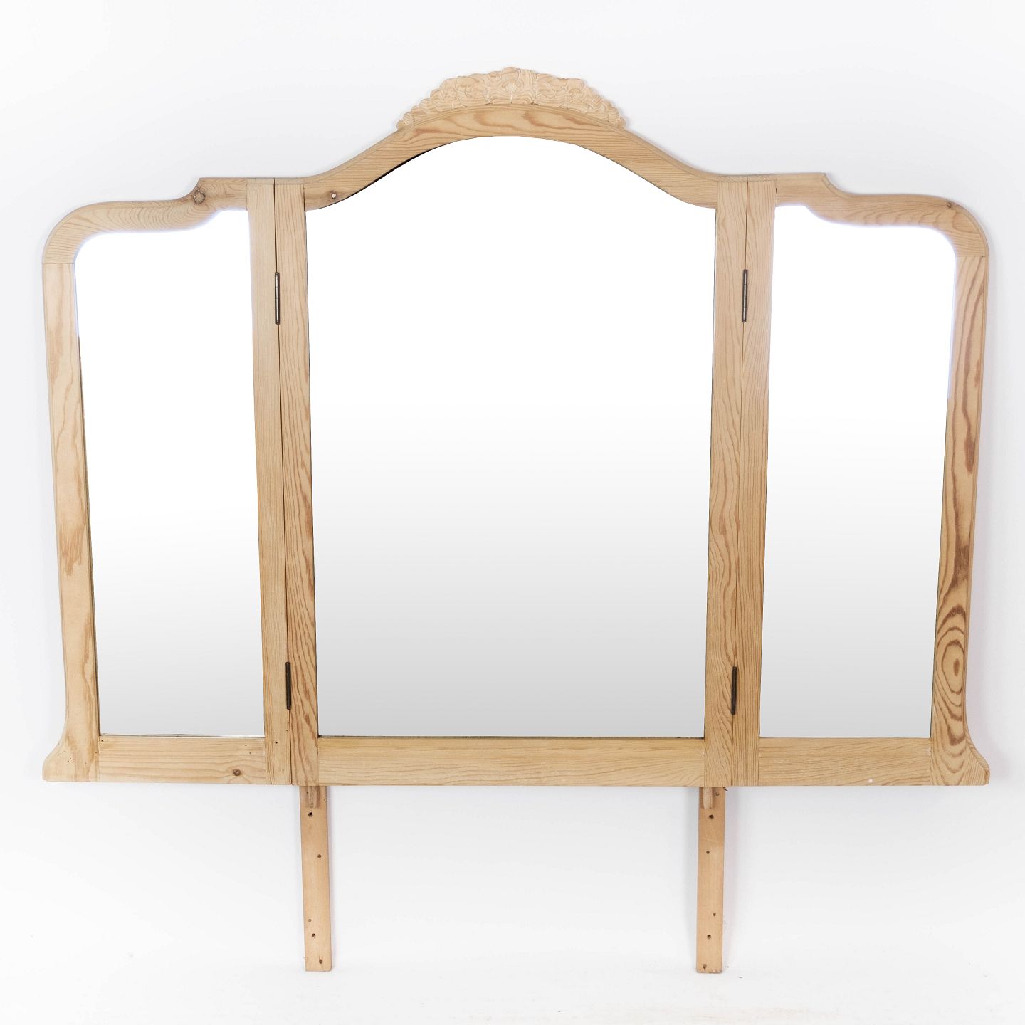 Tredelt spejl med ramme af fyrretræ, i flot antik stand fra omkring 1930.